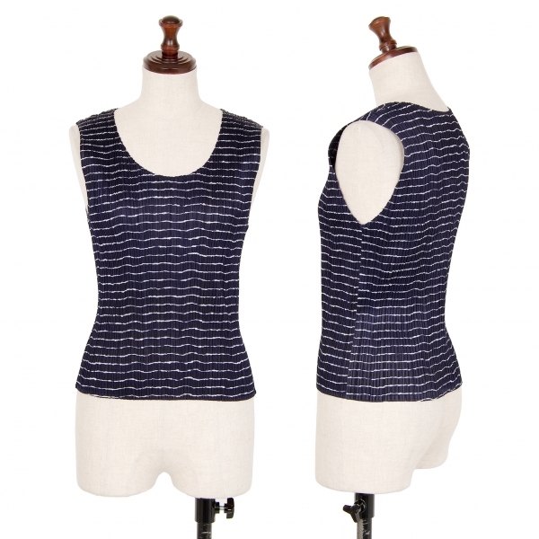 | プリーツプリーズPLEATS PLEASE プリーツボーダータンクトップ 紺3 |
