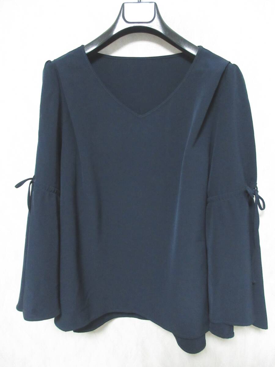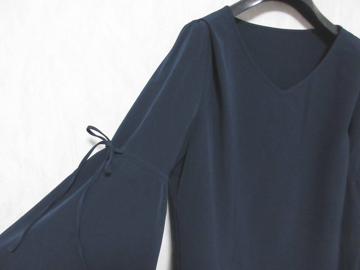 エフデ ef-de リボン付き フレアスリーブ カットソー 紺 ネイビー 大きいサイズ 13 亥5099