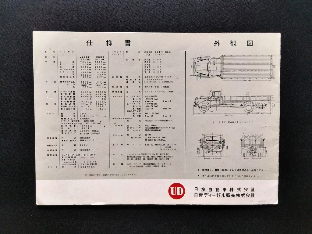 '60s UD ニッサン ディーゼルトラック U680 当時物カタログ!☆ ダンプ タンクローリ 2サイクルエンジン ボンネットトラック 旧車カタログ