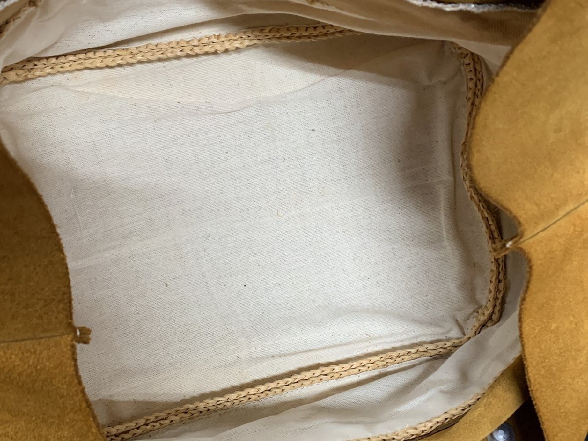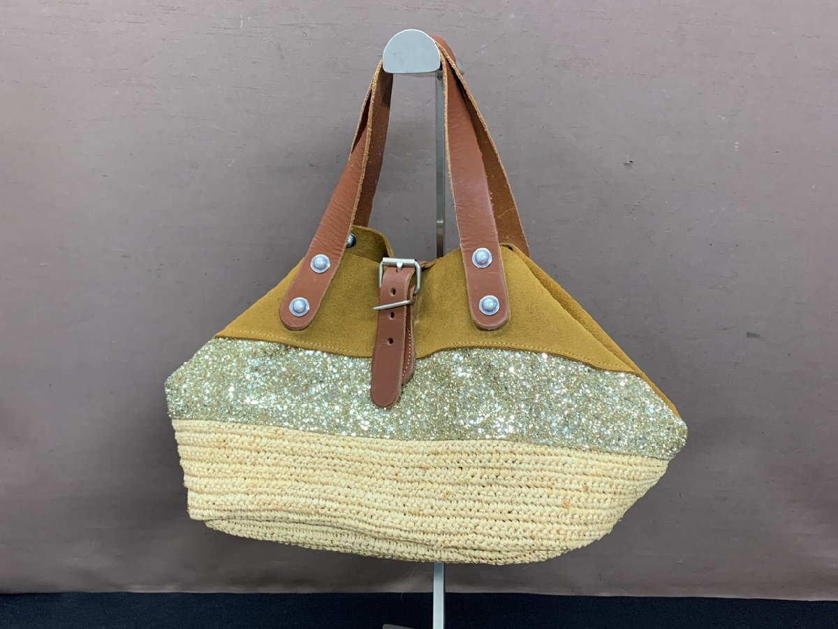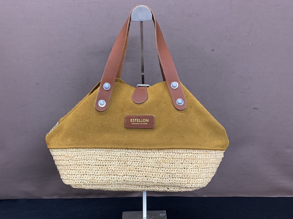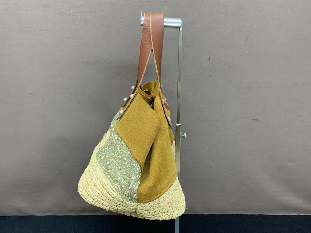 【N-6698】estellon エステロン 切替 トート バッグ ブラウン系 ラメ ハンドバッグ 東京直接可【千円市場】