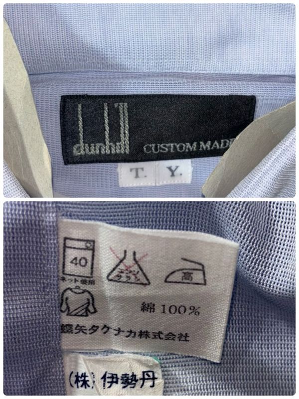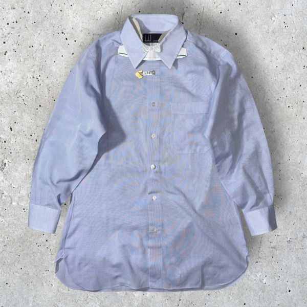 ★シアーシャツ★dunhill CUSTOM MADE 長袖シャツ sizeS スカイブルー系 クリーニングタグ付 透かし 伊勢丹 ダンヒル 古着 クリーニング プレス済み USED 1684