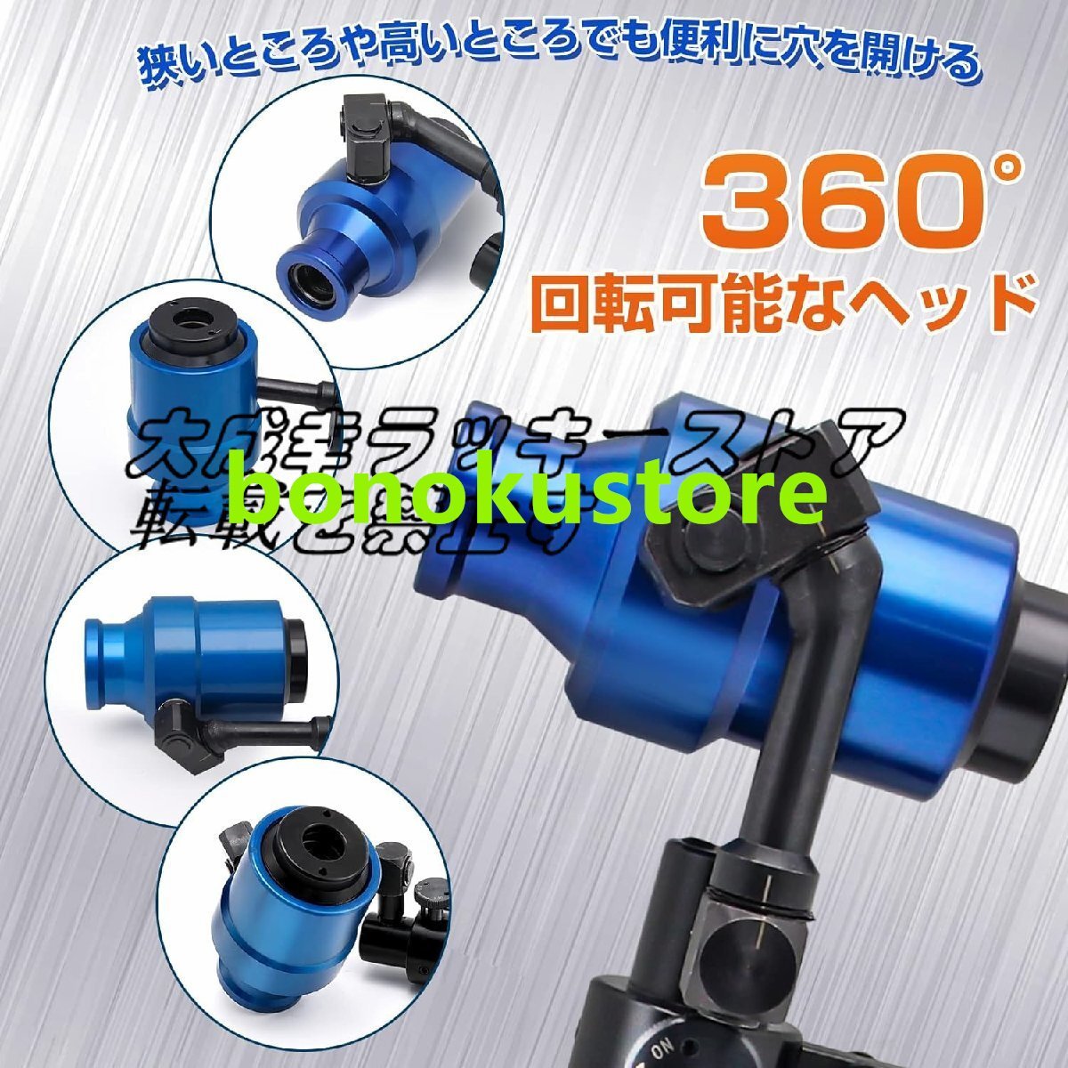 2)360°回転可能なヘッド:油圧パンチのヘッドを自由に回転させて角度を変えることができるので、穴あけの角度を気にする必要がなくなり、狭いところでも簡単にパンチングすることができます。