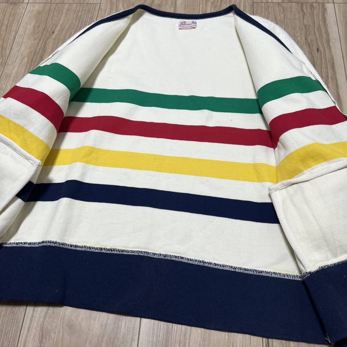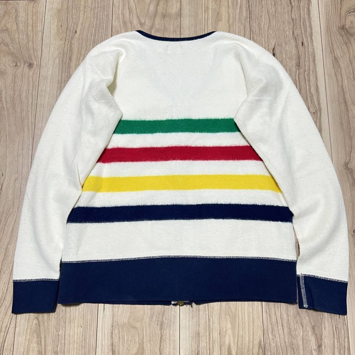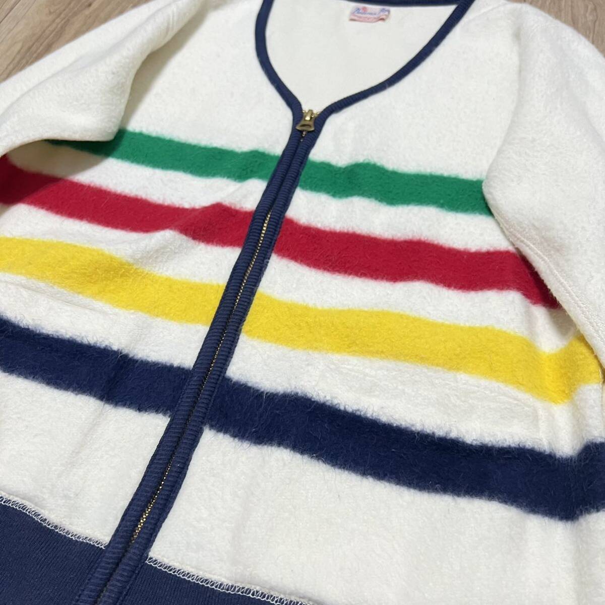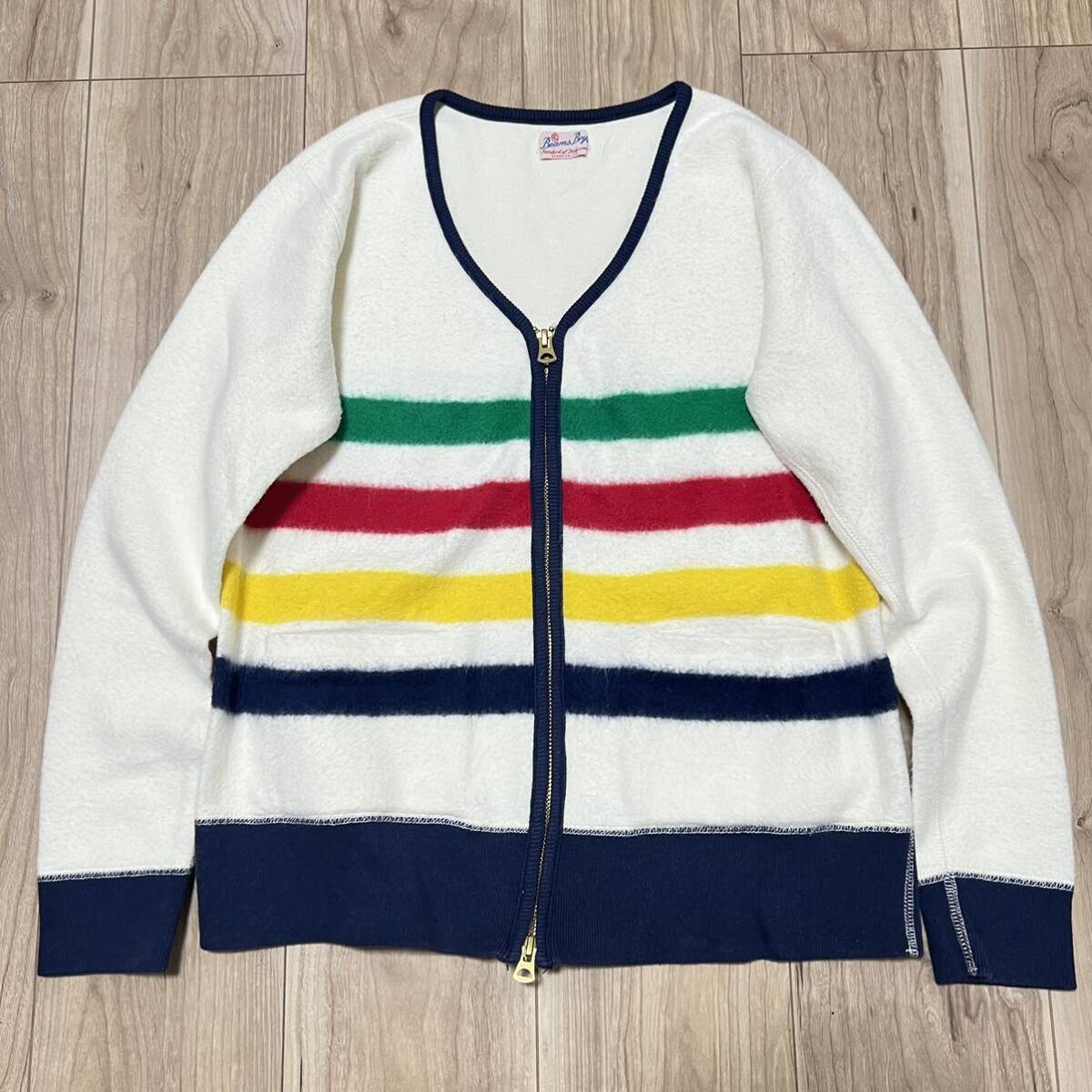 詳細→スウェット生地で起毛の面を表にして作られたカーディガンです。ビンテージで有名なhudsons bayを彷彿させるようなカラフルなボーダーがとても可愛いデザインです。