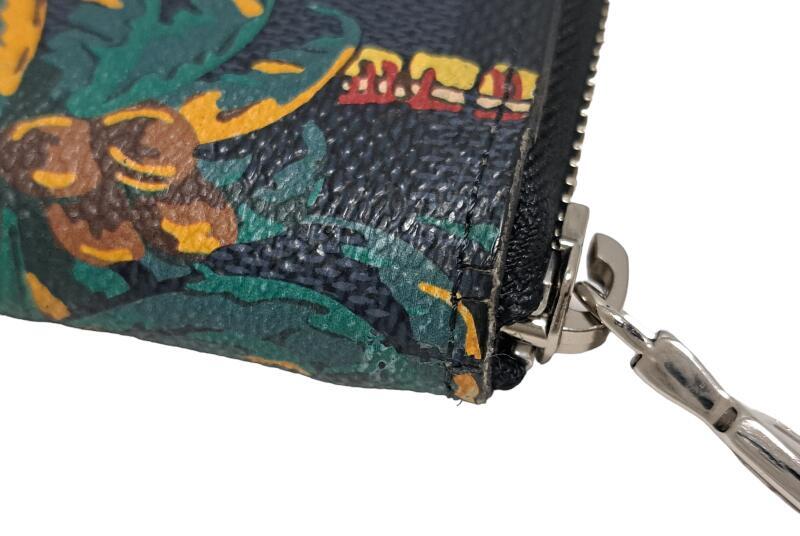 状態・・・縁にスレや少々の細かなヒビ箇所があります、端部のプリントに僅かな剥げ箇所があります。コインケース内にわずかな薄汚れ、内部レザーにスレやカードポケットの押し跡、カードポケットの使用跡があります。目立った広がりやポケットダメージはありません。
