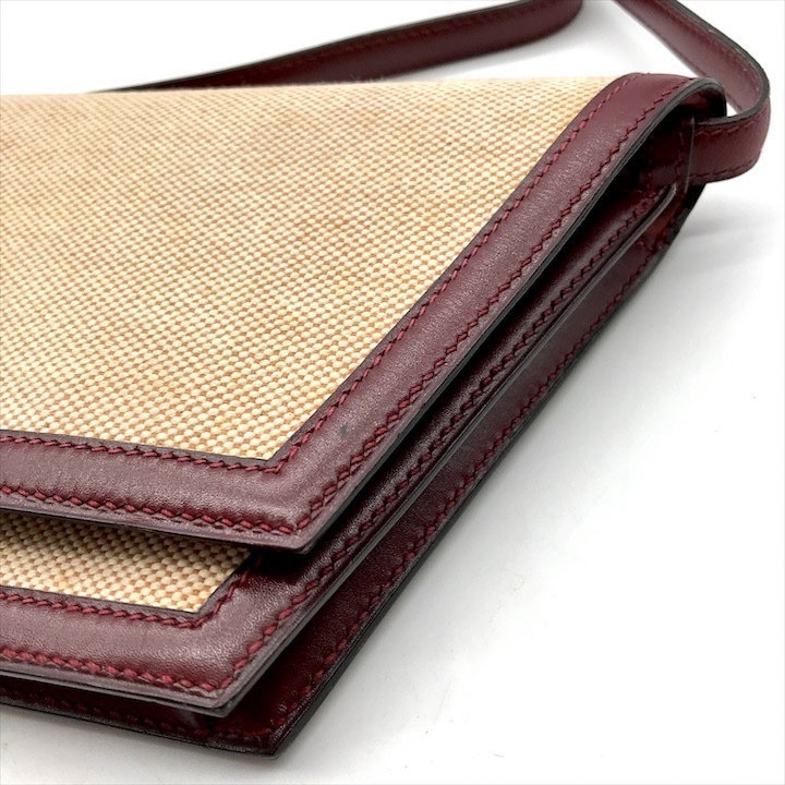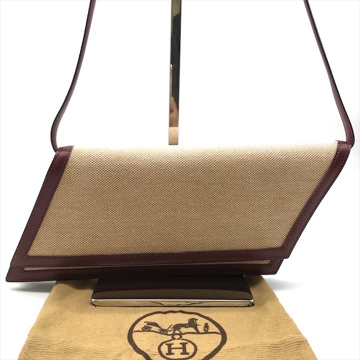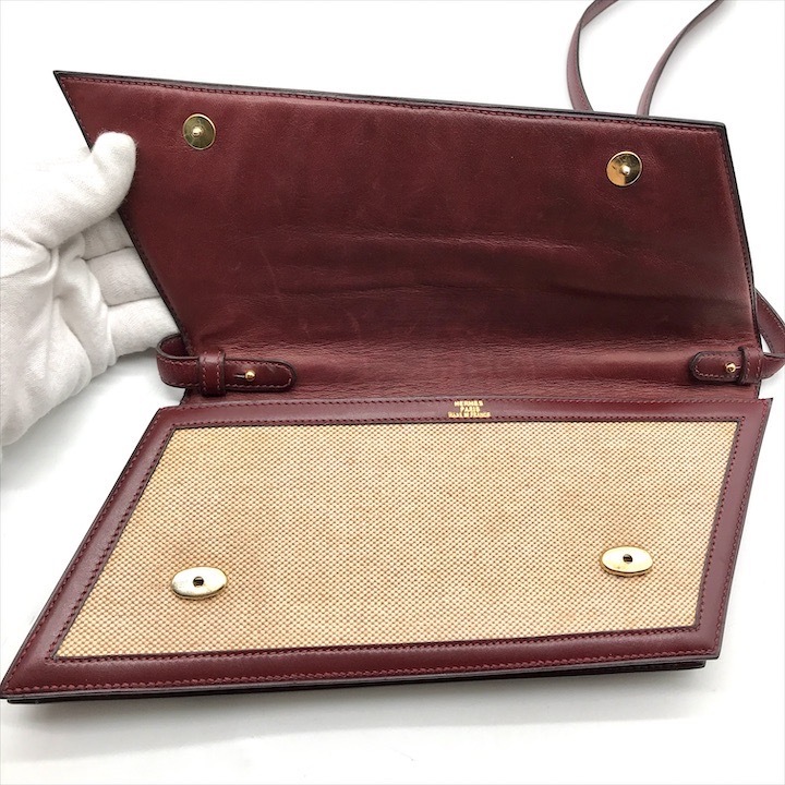 良品 HERMES エルメス トワルアッシュ カーフスキン 2WAY ヴィンテージ クラッチ ショルダー バッグ ボルドー a3491 | |||