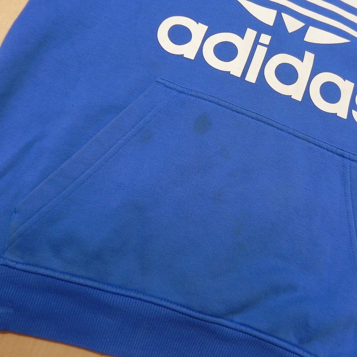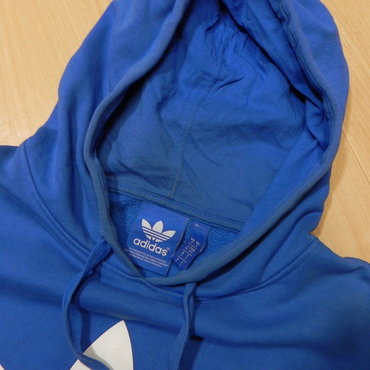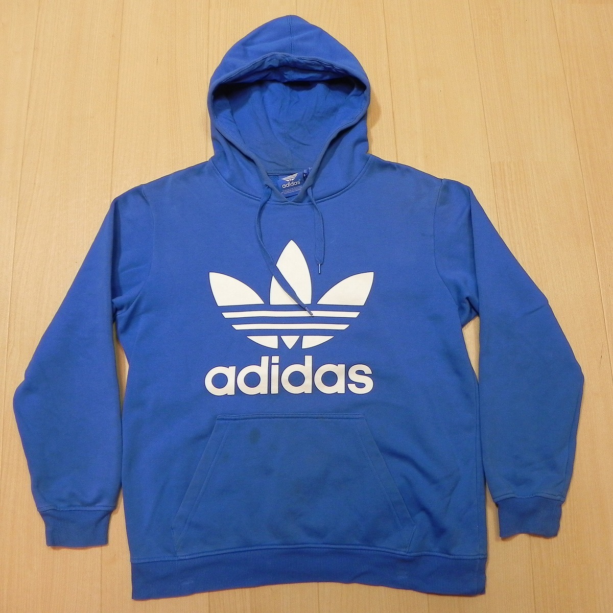 ● adidas フーディー スウェットパーカー 青 アディダス Mサイズ ブルー トレフォイル 古着 即決 ★h