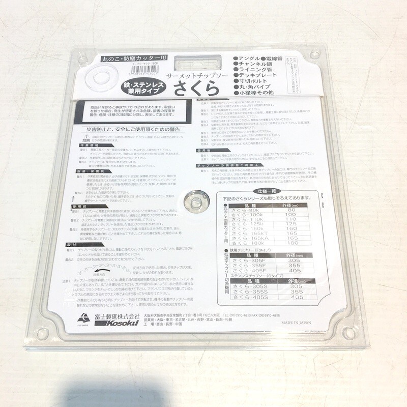 | 商品詳細 | 富士製砥 サーメットチップソーさくら180K 180X2.0X20 TP-180K 2枚セット 未使用です。 画像にあるものが全てです。 【※写真にないものは付属しておりません】 『領収書につきまして』 領収書(インボイス制度対応)が必要な場合は発行させていただきますのでご要望欄にてお申し付けください。その際、宛名と但し書きのご指定もお願いいたします。 【仕様】 切断能力(mm)鉄鋼:6 切断能力(mm)ステンレス:3 外径(mm):180 刃厚(mm):2 穴径(mm):20 刃数:40 最高使用回転数(rpm):4500 【用途】 鉄・ステンレス用・アングル・電線管・ライニング管などの切断に。 ITDA9ZAZPH94 |