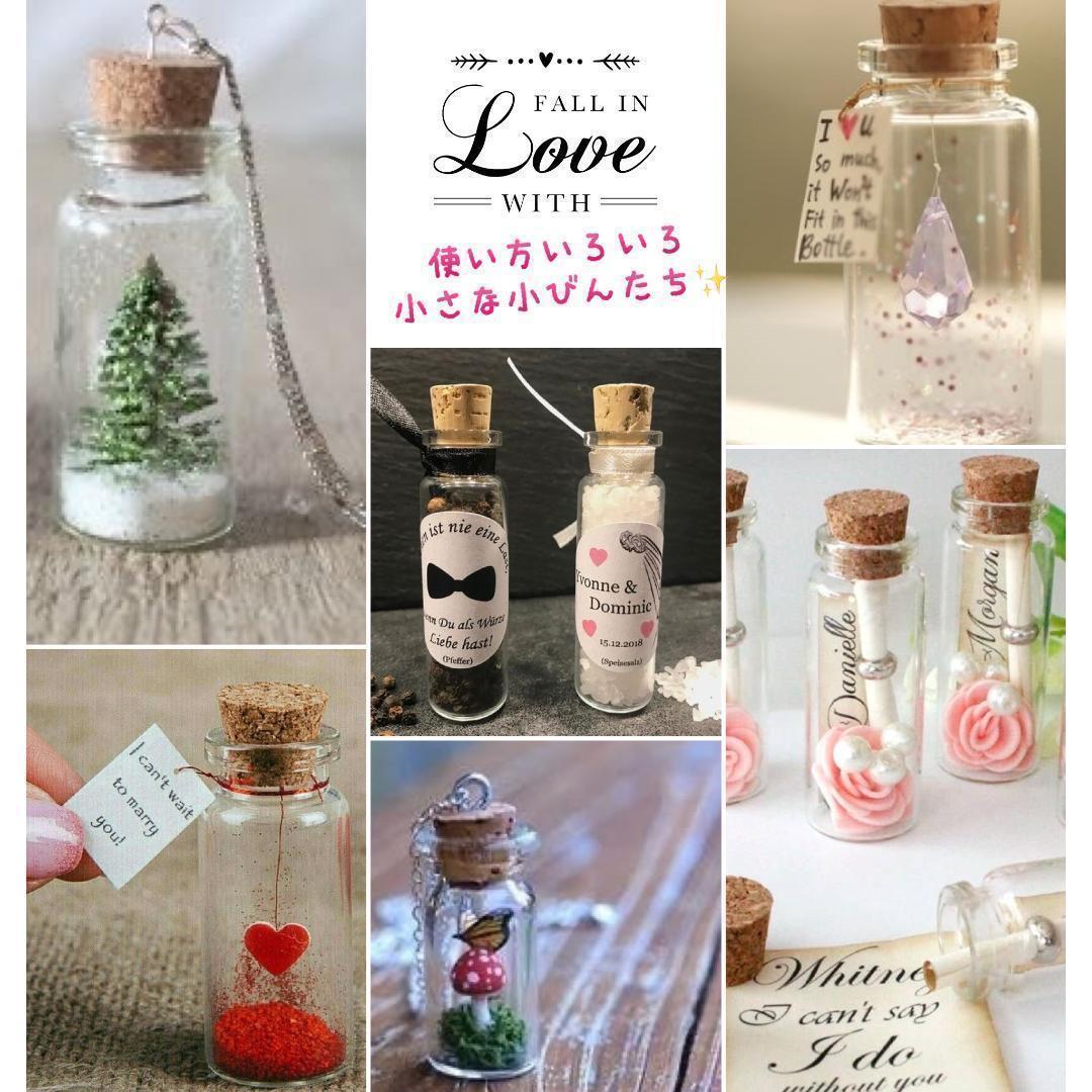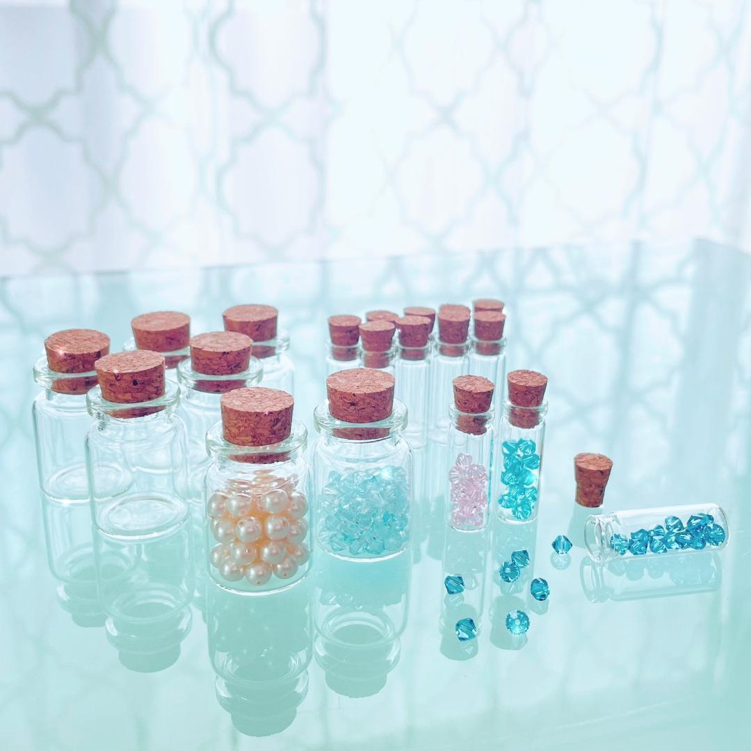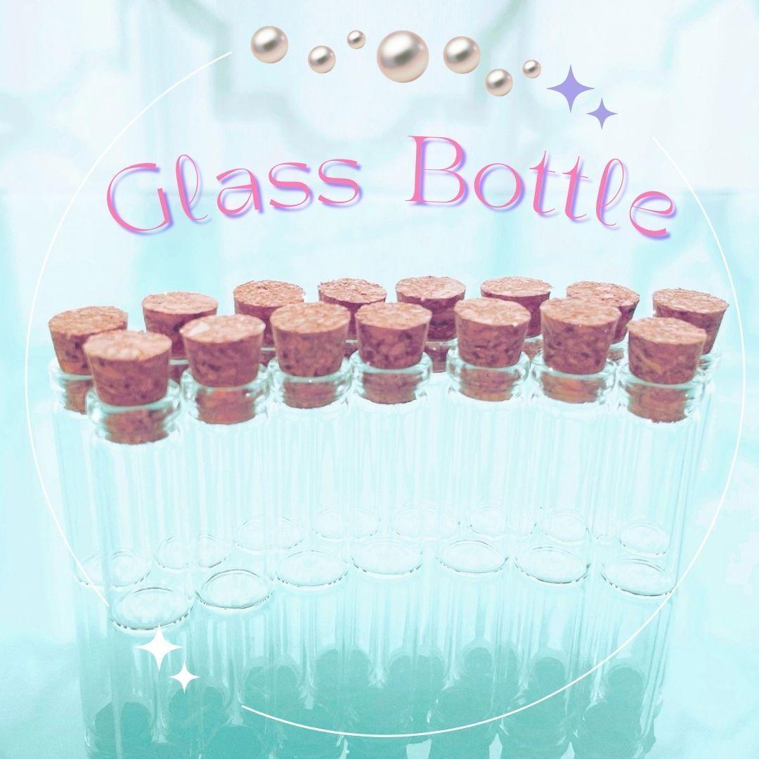 小さな透明ガラスボトルにコルク栓がついた可愛い小ビンです。