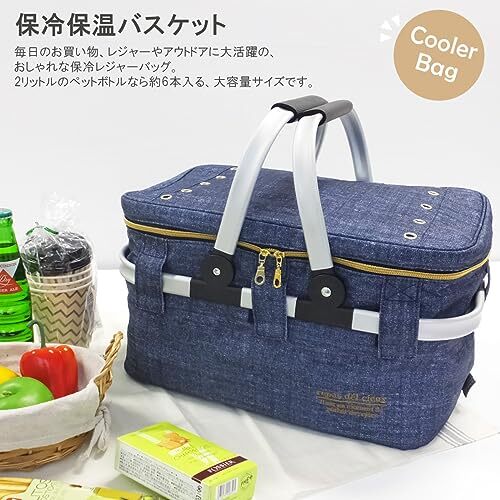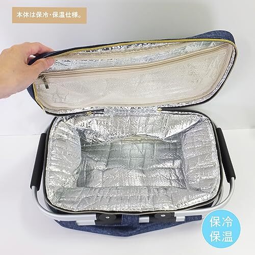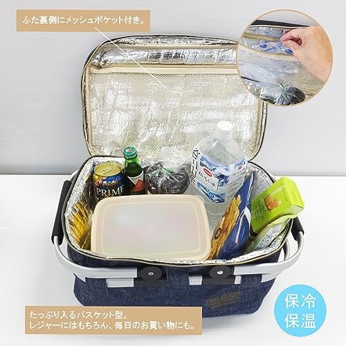 「アットファースト 折りたたみ ソフトクーラーバッグ 保冷 持ち手付き 保冷袋 バスケット レジャーバッグ 大容量 保冷バッグ ネイビー AF61」▼4560178708871▼(商品説明)・ネイビー 40×27×24 AF6128・・Color:ネイビー・バスケット型クーラーバッグピクニックやレジャーに活躍する、大容量保冷バスケット。お弁当や2リットルのペットボトルが入る、バスケット型クーラーバッグ。アルミフレームのハンドルで、重い荷物もらくに持ち運べます。本体は保冷・保温仕様で、オールシーズンお使いいただけます。・便利な仕様上フタは開閉しやすいダブルファスナー。フタの内側には便利なメッシュポケット付き。上フタが大きく開くので、お弁当の出し入れもしやすいです。弾力性のあるグリップは、持ち運びに便利。使わないときは折りたたんで、スリムに収納できます。・スーパーでのまとめ買いや、毎日のお買い物バッグとしても使えます。アウトドアやお花見、運動会、バーベキューなどに大活躍の保冷バッグです。・ご使用時に、本体とフレームを固定する面テープ同士が、全ての場所がきちんと貼りついていることをご確認ください。・サイズ 約 W40cm×D27cm×H24cm、Lサイズ素材本体:ポリエステル100%、中側:アルミ蒸着フィルム、持ち手:アルミニウム説明 レジャーや外遊びにぴったり。おしゃれなクーラーバッグ 飲み物やお弁当を入れるのにピッタリなスクエア型のクーラーバッグ。アルミフレームなので、しっかり感あり。アルミ2ハンドル&弾力性のあるグリップで、持ち運びの際、手が痛くなりにくい。本体は保冷・保温仕様で、オールシーズン使用可能。上フタは開閉しやすいWファスナー型。上フタが大きく開くので、お弁当の出し入れも楽。使わないときは折りたたんで、スリムに収納。保冷バッグに見えない、おしゃれなデザイン 大容量なのでピクニックや運動会などで活躍。底面は、床や地面に置いても安心な足付き(5コ)仕様。