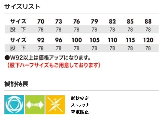 「プレミアム裏綿」。ワンランク上のベーシックユニフォーム。 ★色:38ダークパープル ★サイズ:ウエスト79cm、股下78cm ★素材:プレミアム裏綿(導電繊維混入) ★混率:ポリエステル90% 綿10% ★特徴:隠しポケット ツータック カーゴポケット携帯ホルダー | |