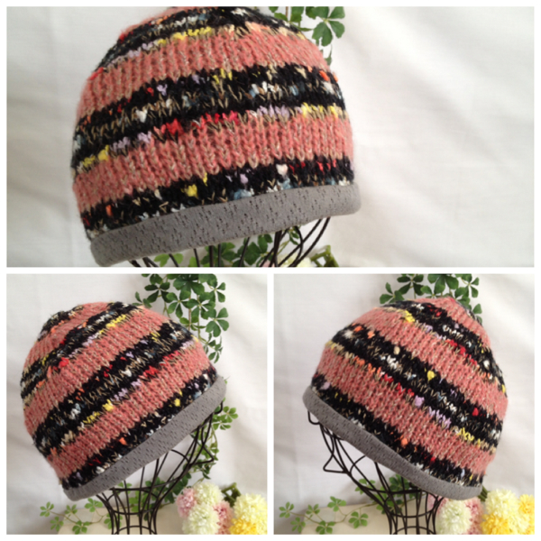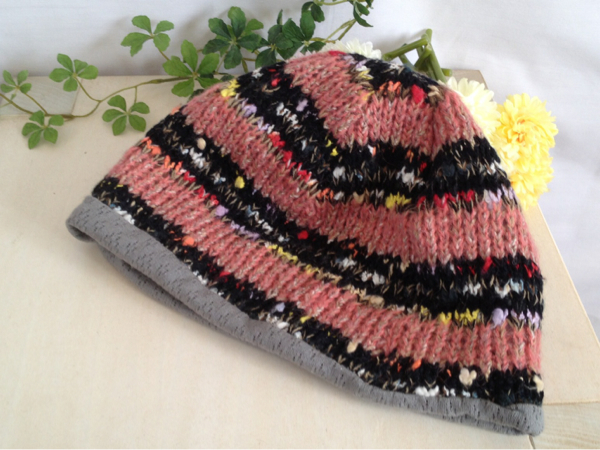 一応リバーシブルとして売られていましたが、グレー側にするとシルエットが崩れるので、ニット側を表にしてかぶっていました。