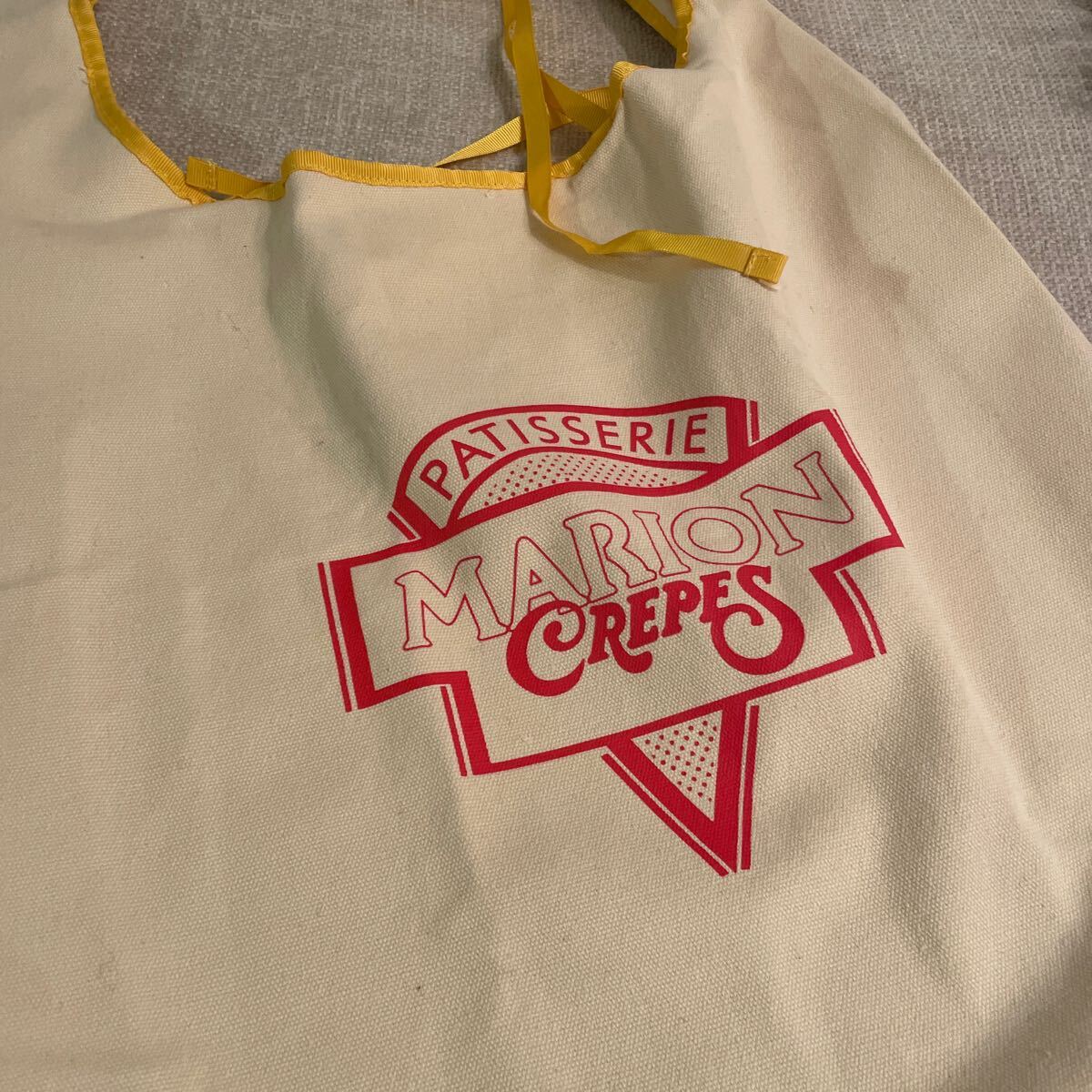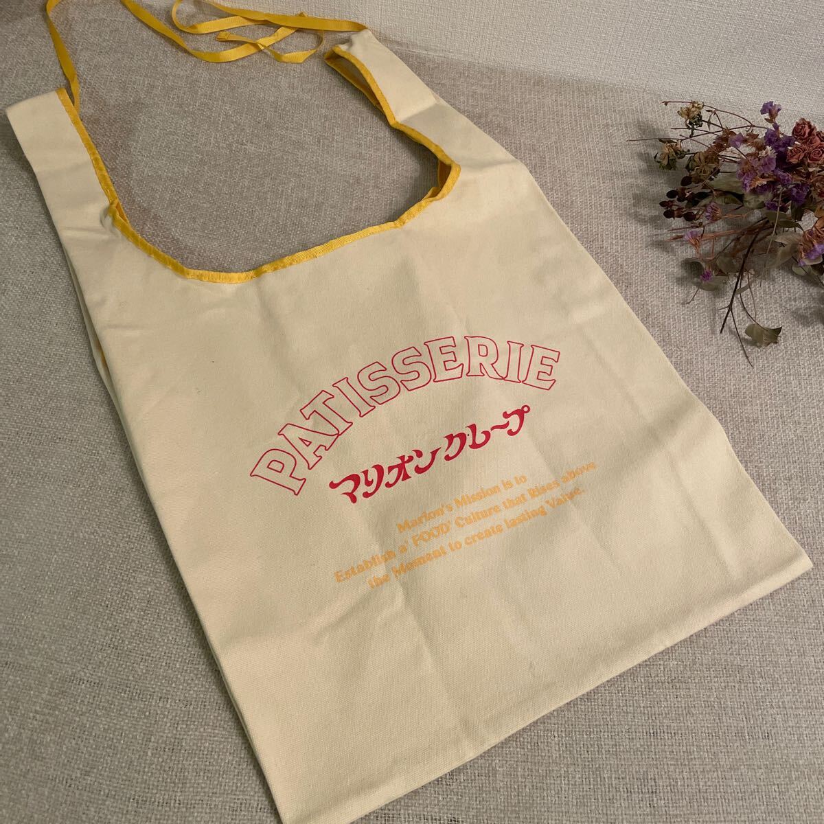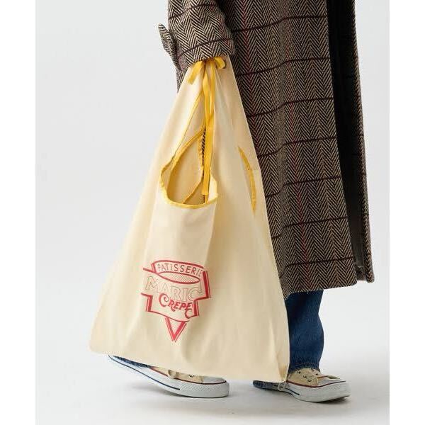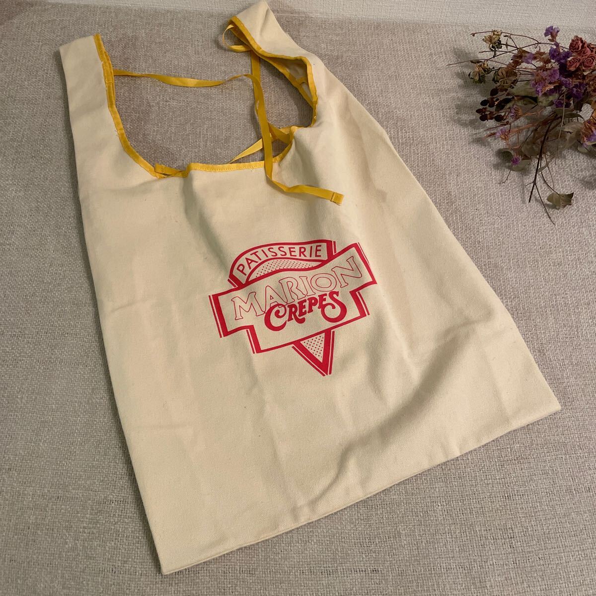 マリオンクレープ×Discoatのコラボアイテム。国民的スイーツとして大人気の、マリオンクレープとのコラボレーションです。フロントとバッグに、マリオンクレープのロゴを施した存在感のあるルックスが魅力。デイリー使いに最適な大きめのサイズ感で、幅広いシーンでご活躍頂けます。紐を結ぶことで、ショルダーバッグとしても使用できる2WAYデザイン。