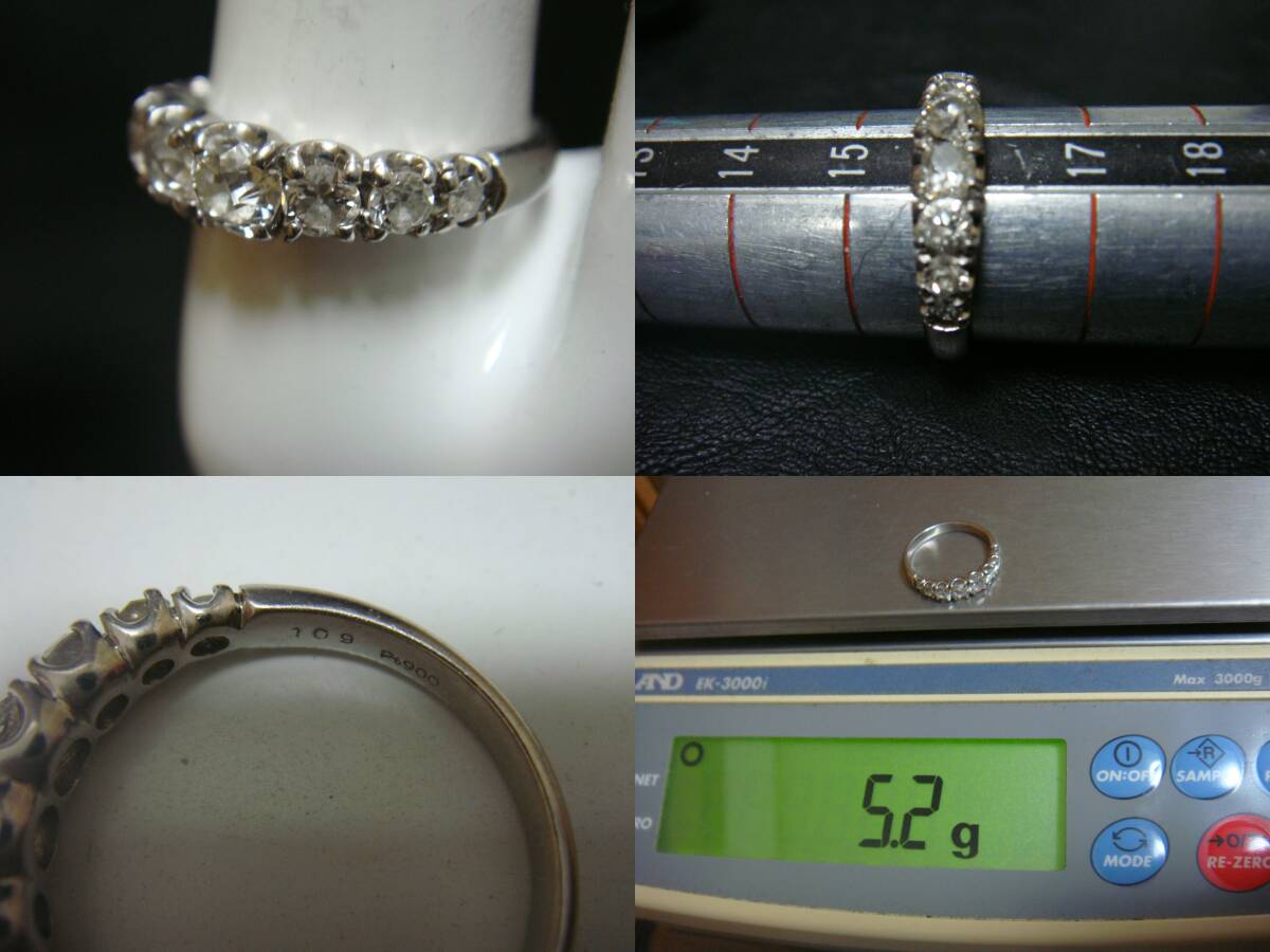 プラチナ製です。pt900,1,09の刻印入り。重さは約5gです。