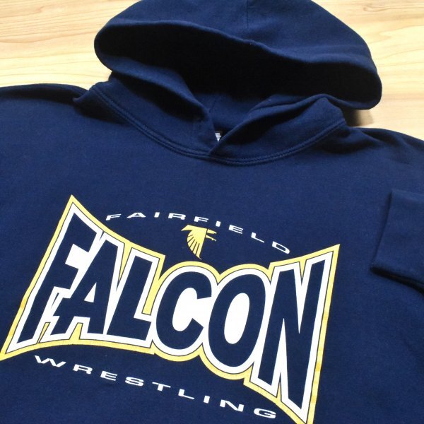 アメリカのレスリングチームの一着で、アメカジデザインのロゴがグッドです。