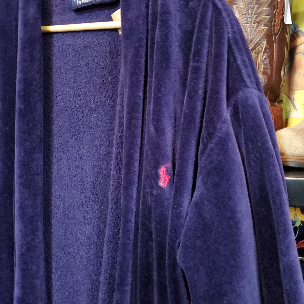 671◆【sizeXL位】90s ラルフローレン Polo Ralph Lauren パイル地ガウン ネイビー 紺 コットン 古着 中古 USED