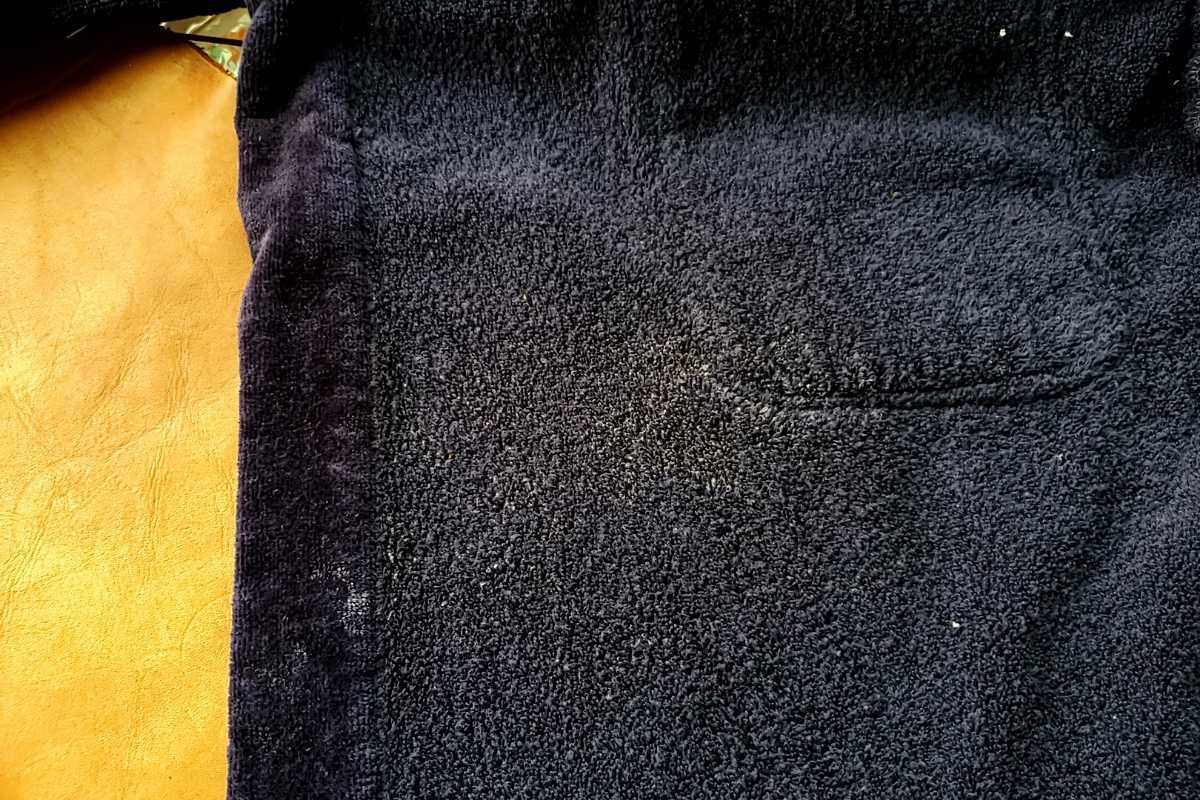 裏地にペンキ?汚れ。ざらついた肌さわりの汚れがあります。