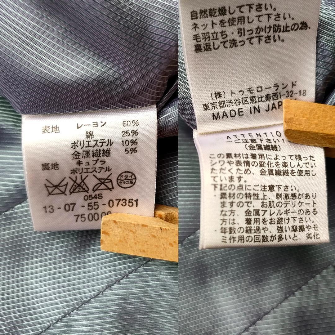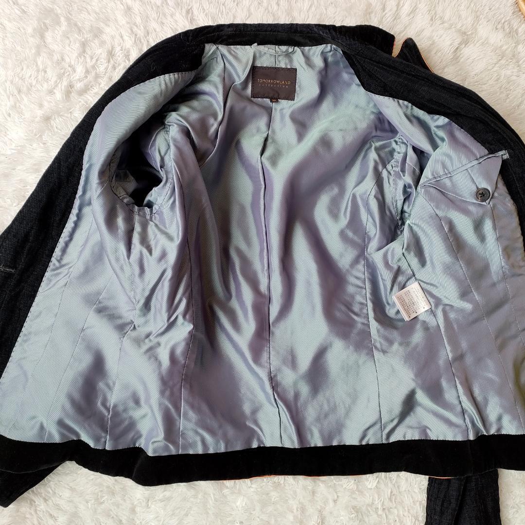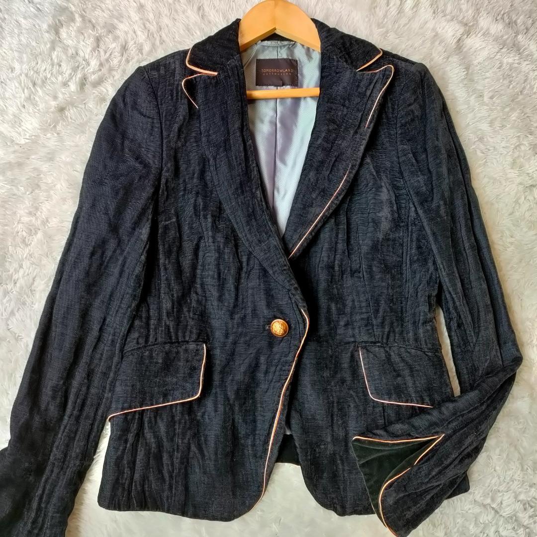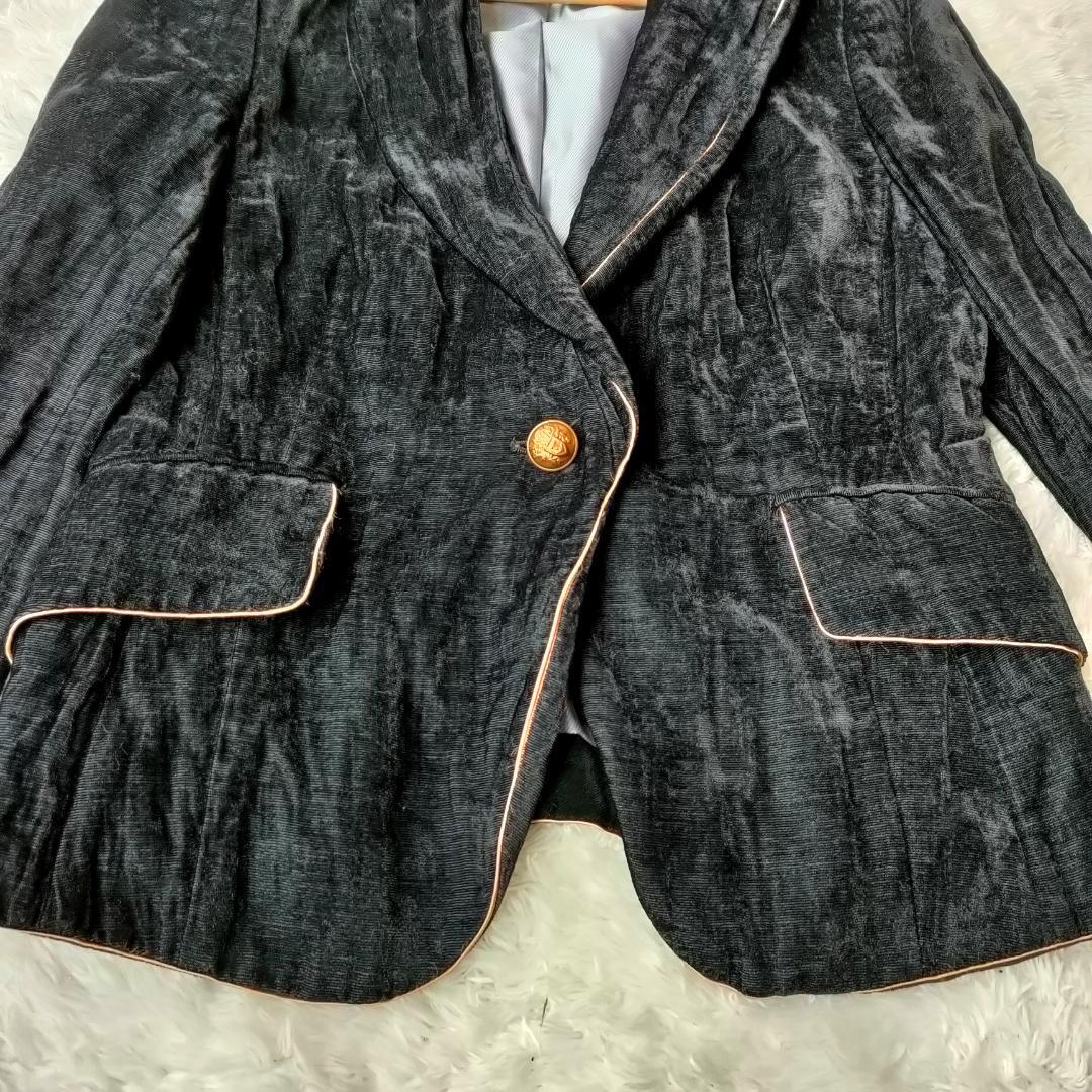 トゥモローランドコレクション ベロア シワ加工 ジャケット 38 M 金属繊維 パイピング シングル 金ボタン