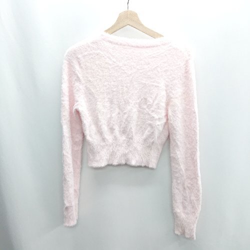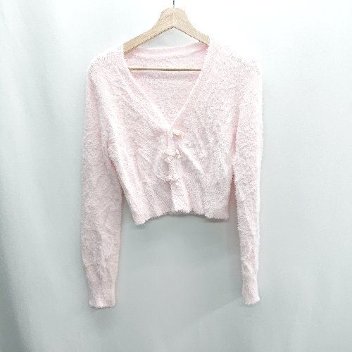◇ ⊇ ROMWE SHEIN リボン装飾 長袖 ファーニットカーディガン サイズS ピンク レディース E