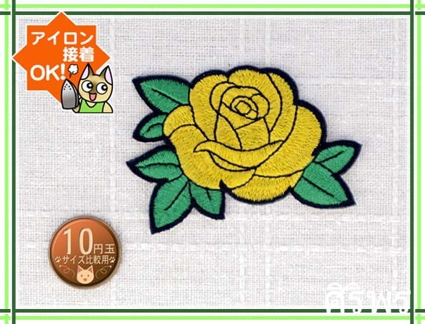 アイロンワッペン/刺繍/アップリケ/バラF/黄色/花/ばら/ローズ