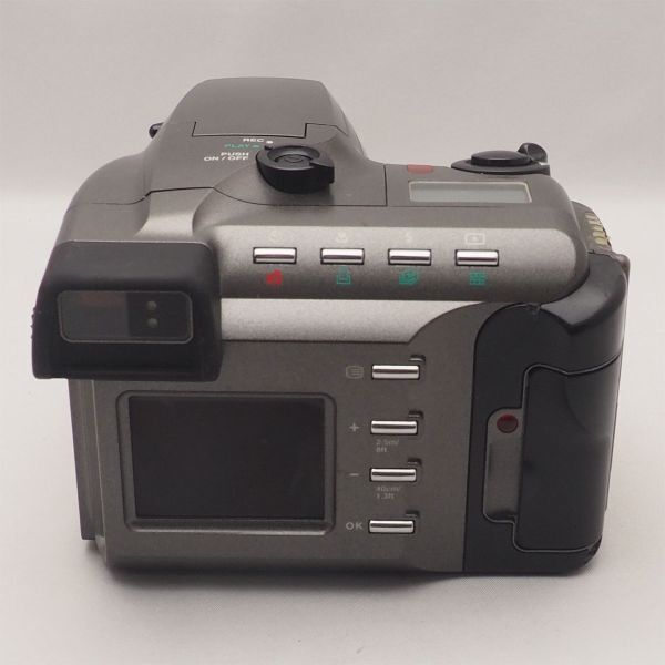 ごらん頂きありがとうございます。 デジタルカメラ 本体のみでバッテリー、充電器等は付属しませんこと予めご了承お願いいたします。 本体グリップ部のゴム、劣化により剥がれております。両面テープが残っておりますがキレイに清掃しております。 手持ちの電池にて動作確認を行いました。 シャッター切れました。 メモリーカード、記録、再生できました。 ズーム、動作しました。 ストロボ、発光しました。 各種ボタン、動作しました。 上記のみの確認を行いました。 上記のことを予めご了承お願い致します。 上記のことから、ジャンク品としてお願い致します。現状優先とし動作保証は一切ございません事、予めご了承よろしくお願いいたします。 記録メディア: スマートメディア 電池: 単3電池 x 4 - 外観 レンズ、コーティングに1箇所ごく小さいスレあります、それ以外はキズ、スレ、カビ、クモリなくキレイです。 液晶画面、コーティングに薄いスレあります。それ以外はキズ、スレなくキレイです。 ファインダー、キレイです。 上部液晶、キズ、スレなくキレイです。 本体グリップ部のゴム、劣化により剥がれております。両面テープが残っておりますがキレイに清掃しております。 本体、小キズ、スレなどあります。 詳細については、画像にてご判断ください。 - 送付品 - 本体のみ |