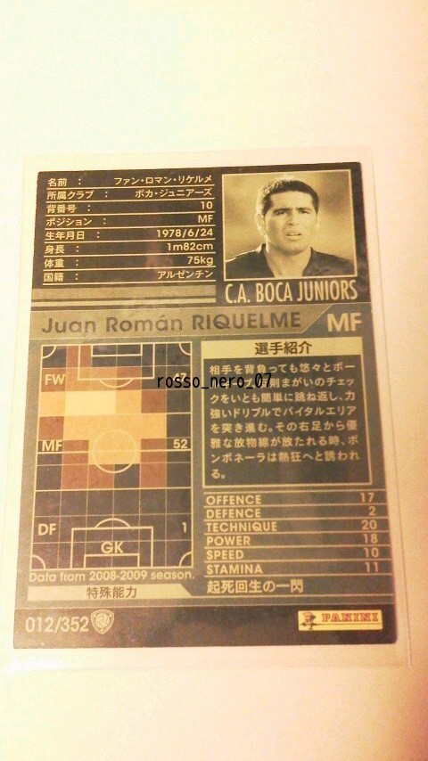 ☆WCCF2008-2009☆08-09☆012☆黒☆ファン・ロマン・リケルメ☆ボカ・ジュニアーズ☆Juan Roman Riquelme☆C.A. Boca Juniors☆