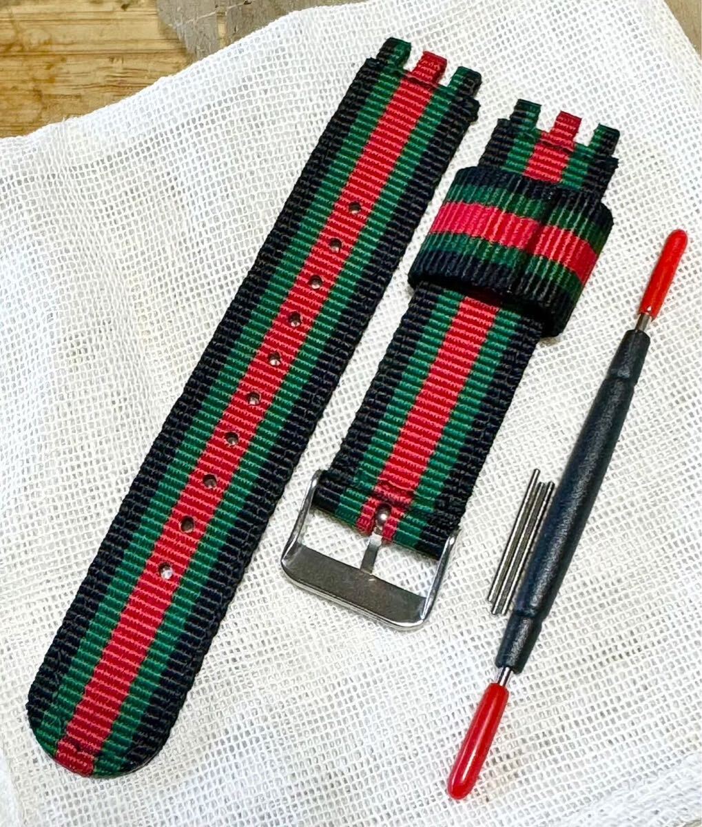 【19mm】新品!SWATCH スウォッチ用 ナイロンバンド ストライプです。