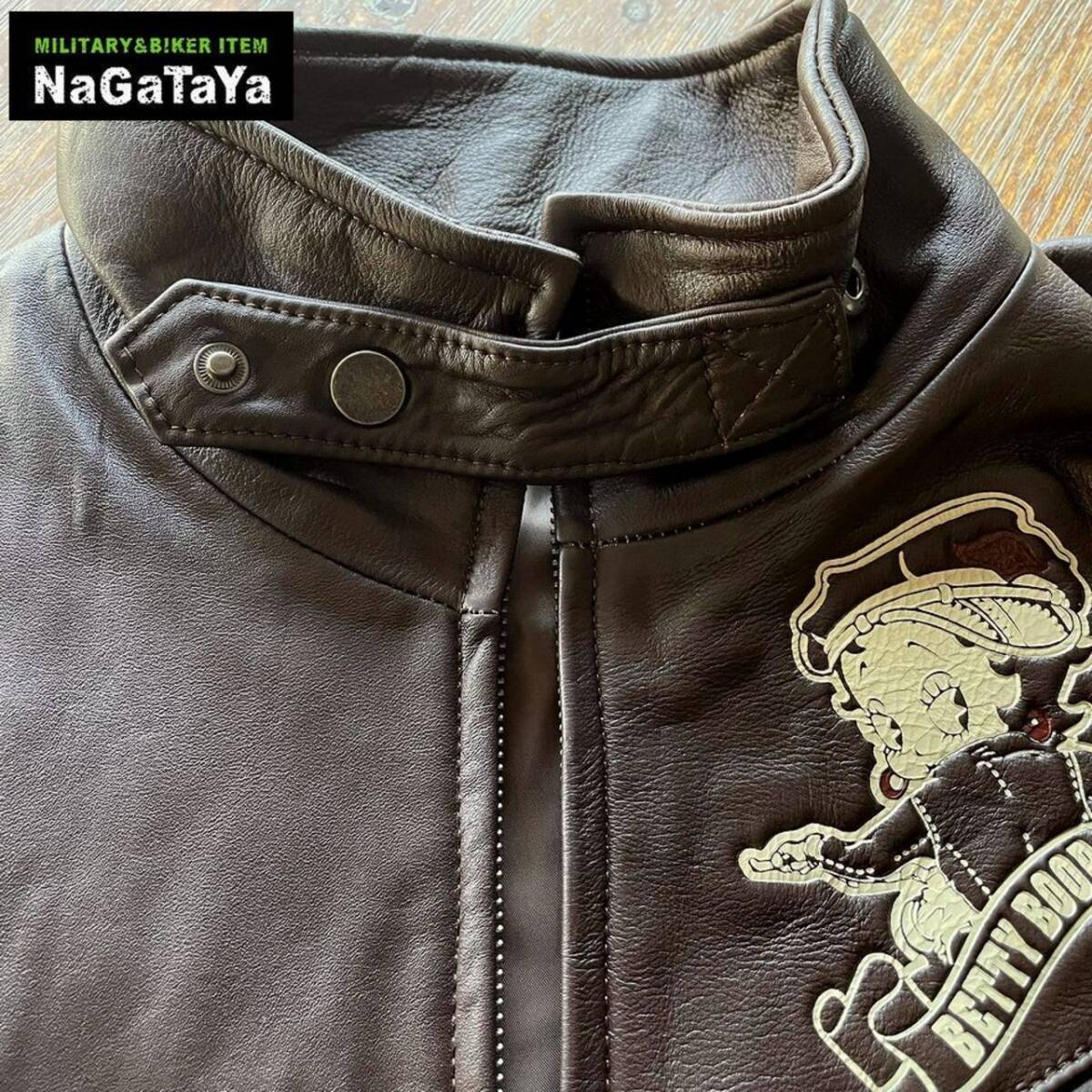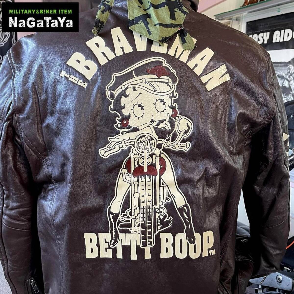 The BRAVE-MAN×Betty Boop ブレイブマン&ベティブープ コラボ バイカーベティ 本革 カウレザージャケット 牛革 ブラウン XL BBB-2150