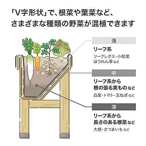 ブランド:タカショー(Takasho) カラー:ナチュラル サイズ:Small 立った姿勢でお手入れがしやすく、椅子に座ったままでもプランターの下に足が入るので、植え付けや収穫などの作業がしやすくなります。 サイズ:約幅103.5cm×奥行46cm×高さ80cm 重量:約12kg 色:ナチュラル 材質:本体:天然木、ライナー:ポリプロピレン 土の容量:約90L(目安値) | |||