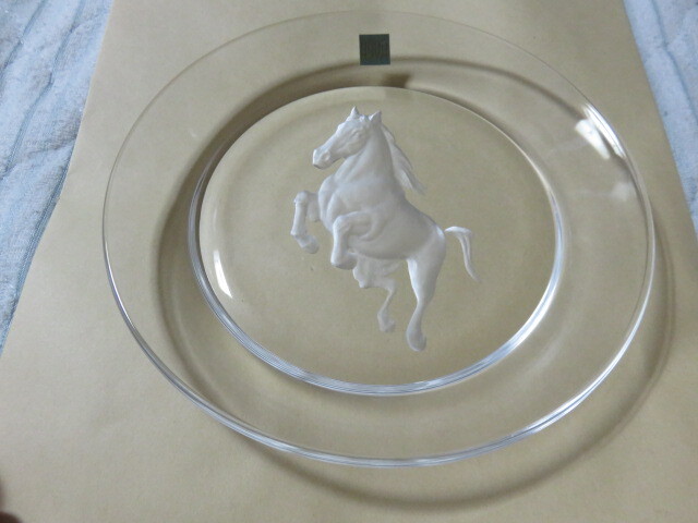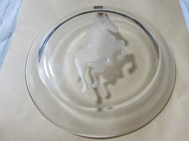 HOYA CRYSTAL ホヤ クリスタル 保谷クリスタル 大きなサイズ 直径184㎜高さ23㎜目安 馬 日本製 前脚部下に微傷有 展示品 を出品します。