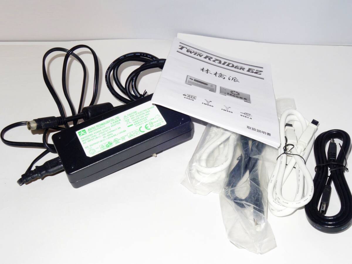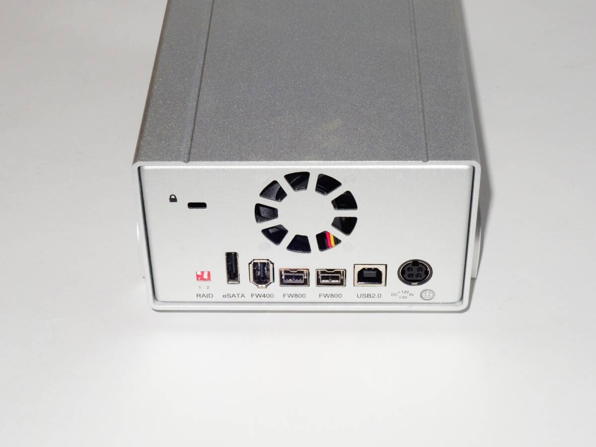 品物は、化粧箱、本体、ACアダプタ HDD固定用の専用のネジが8本 USBケーブル、IEEE1394bケーブル IEEE1394aケーブル、eSATAケーブル 説明紙と言う構成になっております。 状態は比較的きれいでクリーニング済み。 |