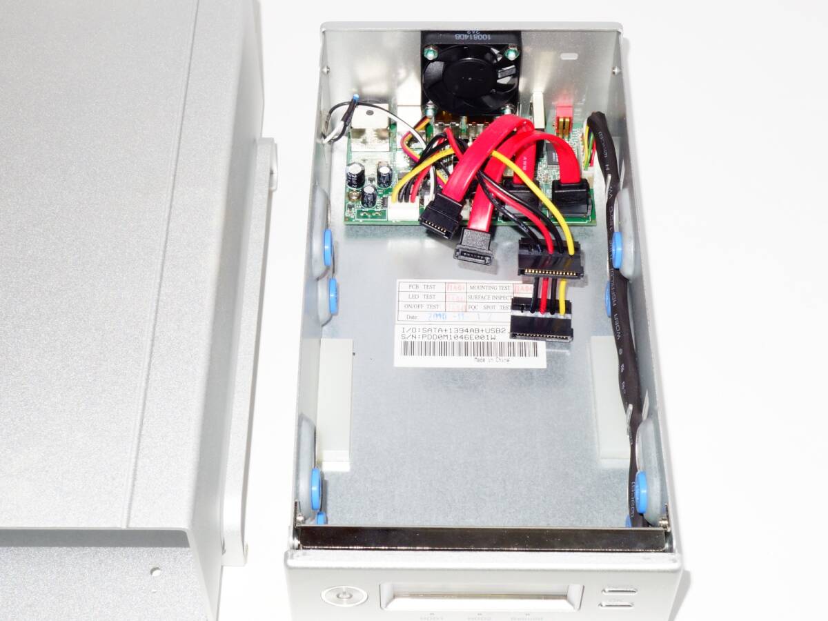 秋葉館が出している 3.5インチHDD用の2台対応ケースで、 eSATA/IEEE1394a,b/USB2.0接続を備えた TWIN RAIDER EZ「RGH35TRE-M40001」 (ハードディスク本体は付属しませんので注意) USB2.0、IEEE1394a,b、eSATAと いろいろなインターフェイス対応なので、 チェック用途にも便利な機材とのことです。 仕様は、メーカーに拠ると単体で2TBまで 合計で4TBまでの対応となっておりました。 ファームウェアは3.40.1003.0000 搭載チップはOXUF936DSと言う情報あり 同チップでは上記ファームウェアより新しいのが あるとの報告もありましたが、この機材では、 未検証との事でで導入はしておりません。 その為、仕様通り片方2TBまで、合計4TBと言う メーカー仕様が出品物の保証となっております。 動作はWindows10 64bitで確認済み。 各インターフェイスでの接続認識動作をチェック済み それから、内部のメインチップに ヒートシンクが装着されておりました。 排気ファンは4㎝ファンですが、 通常の3pinコネクタで内部基板と 接続されていたので、通常の25mm厚ファンや 38mm厚のファンなどに交換可能と思われます。 |