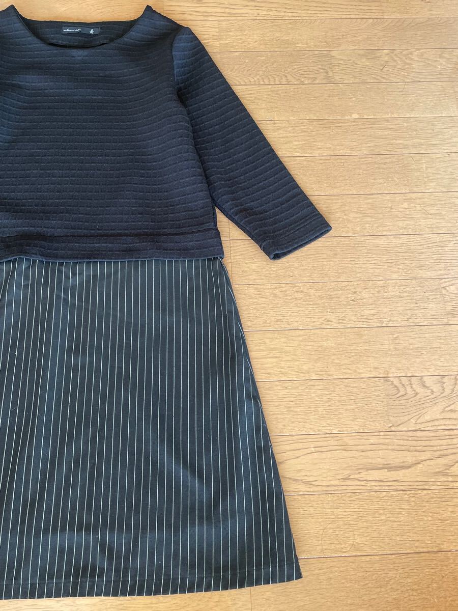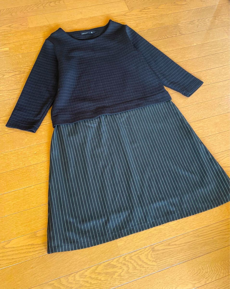 このワンピースは、シンプルでありながら洗練された印象を与えるストライプ柄が特徴です。様々なシーンで活躍すること間違いなし。