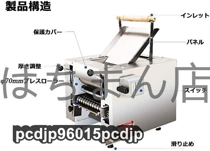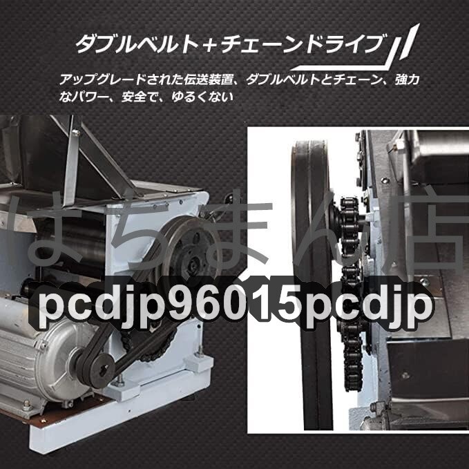 状態:新品未使用 【ローラーカッター式】:この製機は生地を伸ばしたあと、カッターに通してカットする「ローラーカッター式」です。の厚さを調整でき、均一に作りやすい点が特徴で、より本格的なを作ることができます。 【550W純銅モーター】:ハイパワーで純銅製モーターを採用し、電動タイプで、スピーディにたくさん麺を作りたい方におすすめです。より手軽に素早く麺作りを行うことができます。家族の人数が多いご家庭やの専門店などには最適です。 【0.5‐4㎜厚み調整可能】:ローラーを調整することで、異なる厚さの生地を押し出すことができます。生地をより美味しく仕上げたい場合は、作業中に何度か大きな隙間から小さな隙間に調整すると、より均一な生地と歯ごたえのあるが仕上げられます。 【70㎜直径ローラー】:大径プレスローラーでより均一で効率的なプレス加工を実現します。 【食品用ステンレス製】:304ステンレス製ケーシングを採用し、すべての食品に接触のある部品は、特殊な表面処理を施しております。ステンレス表面のローラーで、素早く生地を伸ばしていきます。歯ごたえの食感、お客様や家族も安心。 製品仕様 生産量:30kg/h 電圧:110V パワー:550W 重量:45kg 防水レベル:IPX1 サイズ:420*420*350mm 周波数:60Hz 付属品:ブレード1点 ★商品写真はできる限り実物の色に近づけるよう努めておりますがご使用のPCモニター設定や部屋の照明により多少、色の変化が感じられる場合がございます
