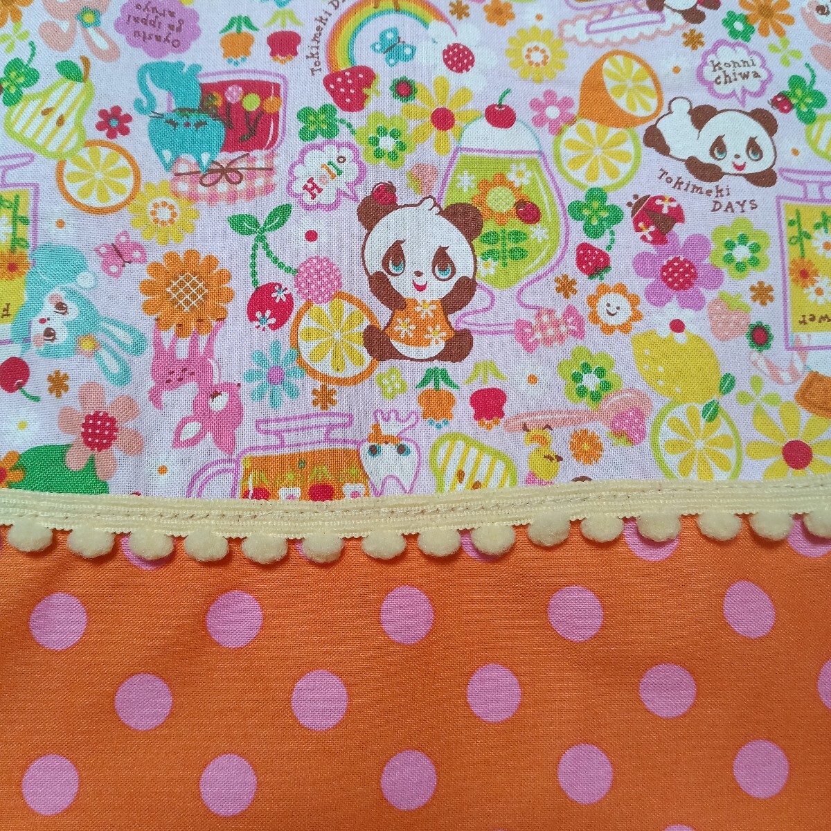 まつ毛ぱんだちゃんと水玉生地とのパッチワークがかわいい