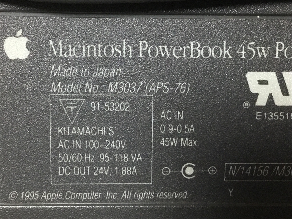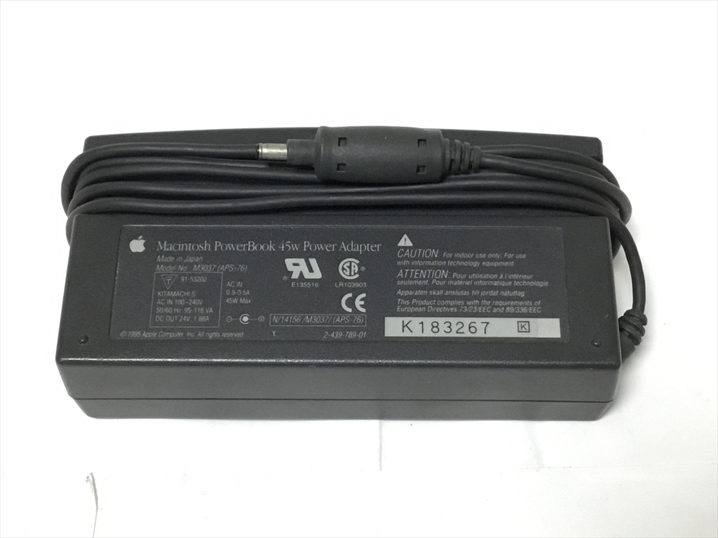 ジャンク No2 Apple 45W ACアダプター Machintosh PowerBook 45W Power Adapter 24v 1,88A アップル