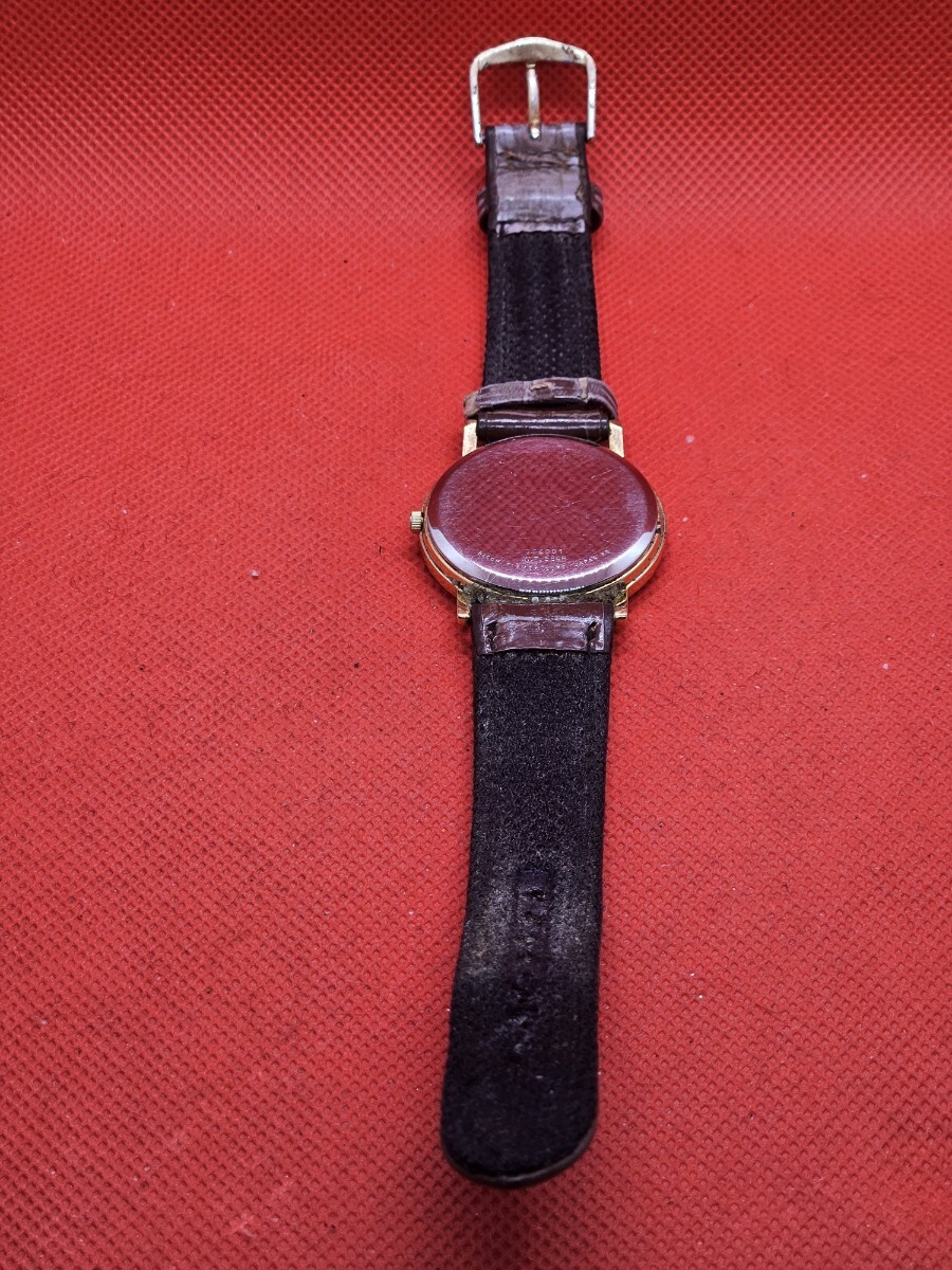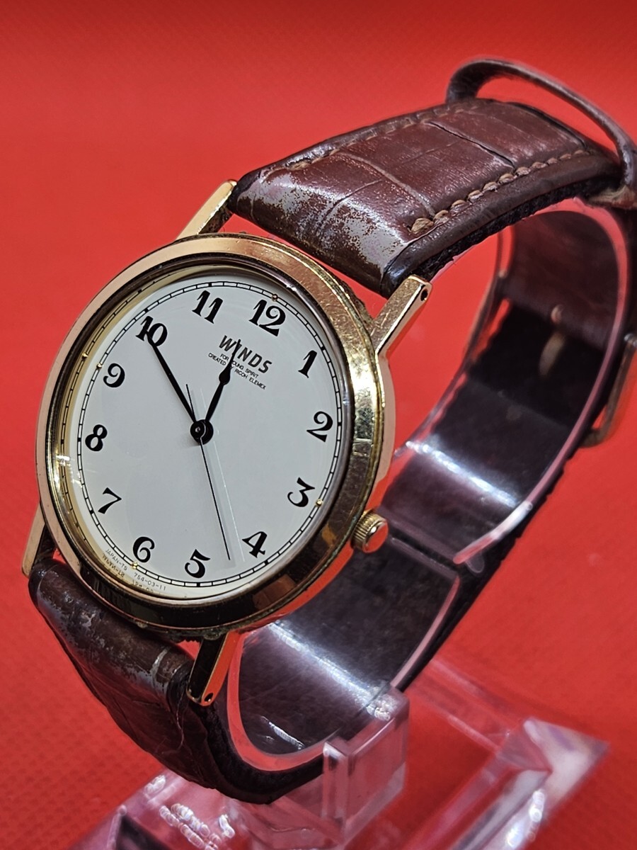 ご覧いただきありがとうございます。 この商品は電池交換済み稼働品です。 ※他のサイトにも出品しているため オークション終了に至らなくても入札 の無いものは削除する場合があります。 ご容赦ください。 商品詳細 本体や裏蓋には細かい傷ありますが、 文字盤は綺麗で、インデックスも綺麗です。 風防に傷あります。 必ず写真でご確認ください。 針の調整出来ます。 動作品でも精度等は計測していません。 電池は新品交換済みです。 ご入札について 上記の事を考慮した上でご検討下さい。 基本現状渡しになります。 未使用品、使用品共に経年劣化による黄ばみ、スレ、 傷などがある場合があります。画像を必ず確認して 頂きご入札はご自身の判断でご入札下さい。 神経質な方はご入札をお控え下さい。 ノークレーム、ノーリターンでお願いいたします。 写真に写っているものがすべてになります。 注意事項 ※他サイトにも掲載中のためオークションの早期取り消し等 する場合があります。ご容赦ください。 ※ 落札後のご質問はご遠慮ください。トラブルの元となる為、 ご質問は必ずご入札前にお願い致します。 ※受取連絡後評価をしていただければ評価を返します。評価 が無いものは評価し合わないものと判断させて頂きますので ご容赦ください。 ※落札後はノークレーム・ノーリターンにてお願いいたします。 (返品等の対応は一切しておりません) ※落札後、未入金 一切返答無しの方や、商品受取後の受取連絡を 全くされない落札者様が大変増えております。 落札後であっても評価に上記の内容によるキャンセルや、 悪い評価が付いてる方は入札を削除することもございますので、 予めご了承下さいませ。 ※土曜日・日曜日・祝日はメール対応が出来ませんので 落札頂いた商品の対応は月曜日以降の対応になります ※領収書の発行は行っておりません。 かんたん決済利用明細をご利用下さい。