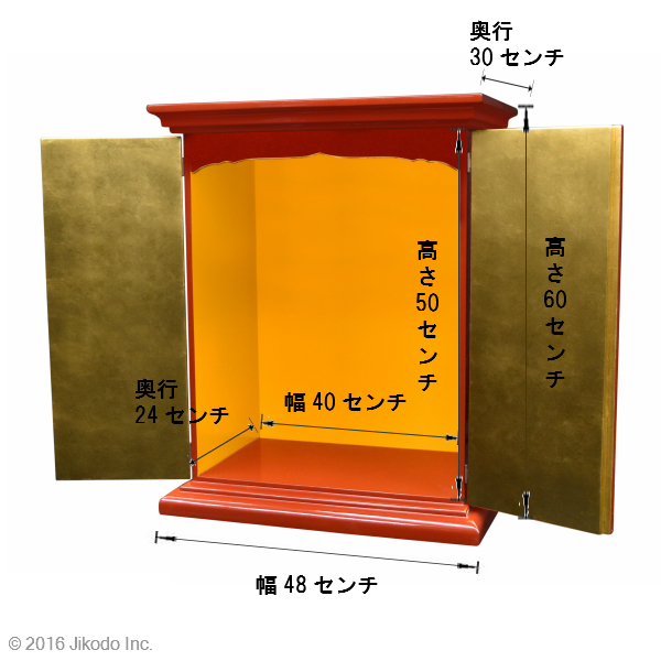 (厨子の内寸高さ50cm、内寸幅40cm、内寸奥行24cmの場合)