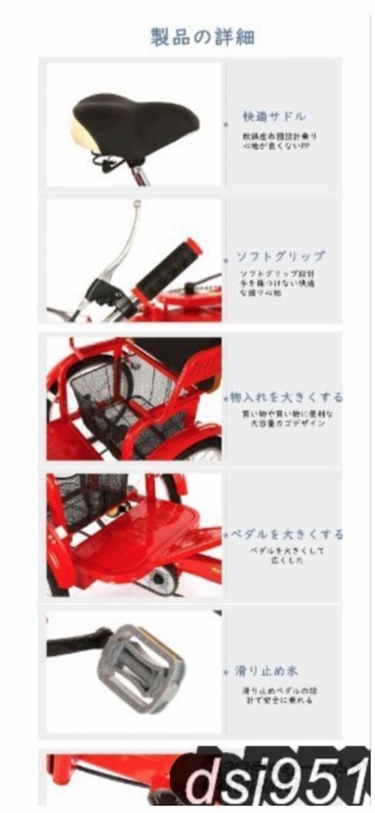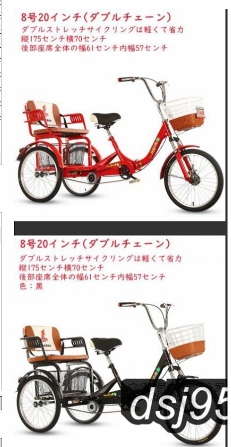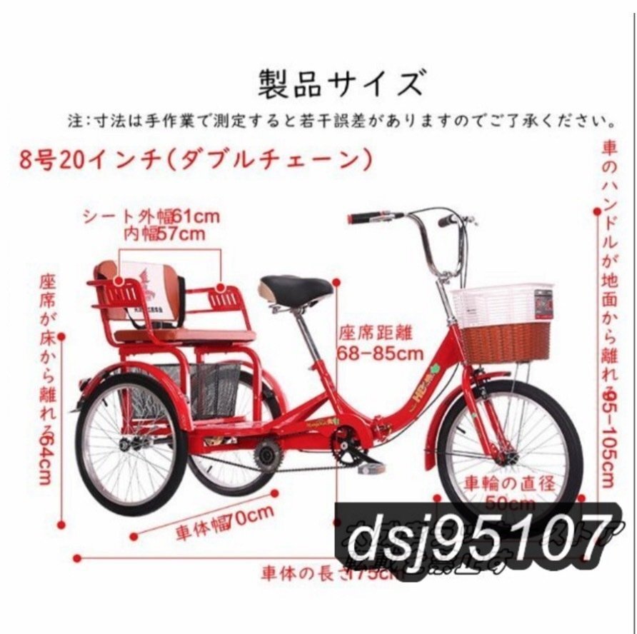 ★状態:新品未使用 着実かつ頑丈:この人力車の三輪車は、高炭素鋼の厚みのあるボディのボディで設計されており、より強力です。 より安定した3本のタイヤを装備。 ディファレンシャルギア、よりスムーズなステアリング、より小さな回転半径。 フロントとリアのディスクブレーキ。 高さ調整可能:座席の高さは、あなたの高さに応じて自由に調整することができます。高さ調節可能ハンドルバーは高品質のアルミ合金で、軽くて操作しやすいです。容易ライダーの安全性を確保する。 デュアルブレーキシステム:前後のデュアルブレーキシステム、敏感なブレーキ。フロントブレーキキャリパーとリアブレーキキャリパーは、両親の安全を保護することができます。 デザイン:8号20寸(ダブルチェーン)、10号20寸(ダブルチェーン) 色:赤、黒 8号20インチ(ダブルチェーン) サイズ:縦175*横70cm*高さ95-105cm 適合身長:140-180cm荷重200kg 後席は身長180cm以下での乗車に適している