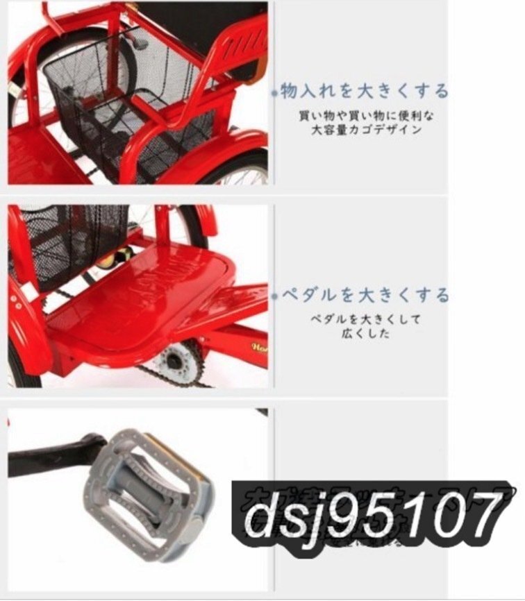大人用 高齢者用 三輪車20インチ三輪自転車 座席付き 背もたれ シートベルトア ショッピングバスケット付き 座席高さ調節可能
