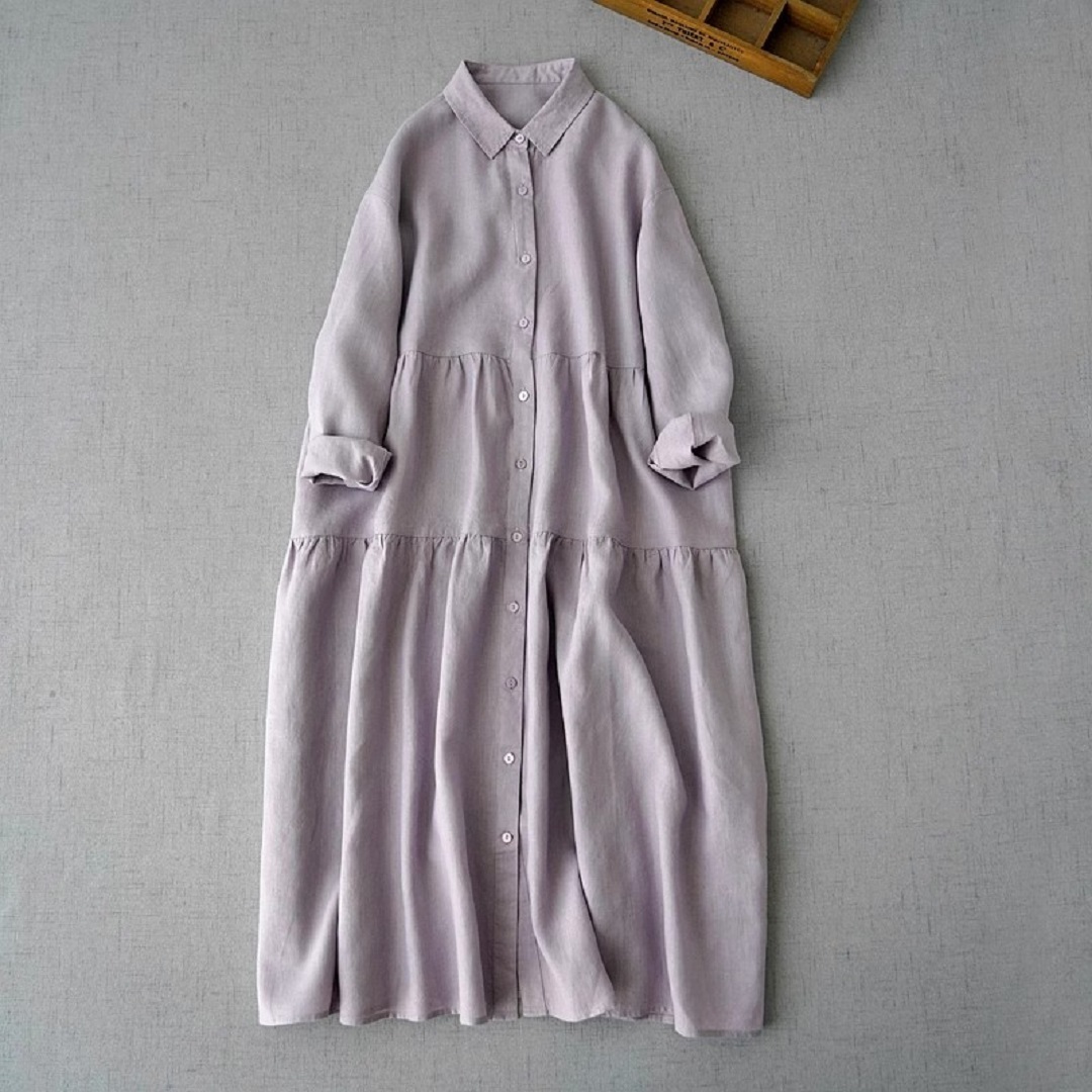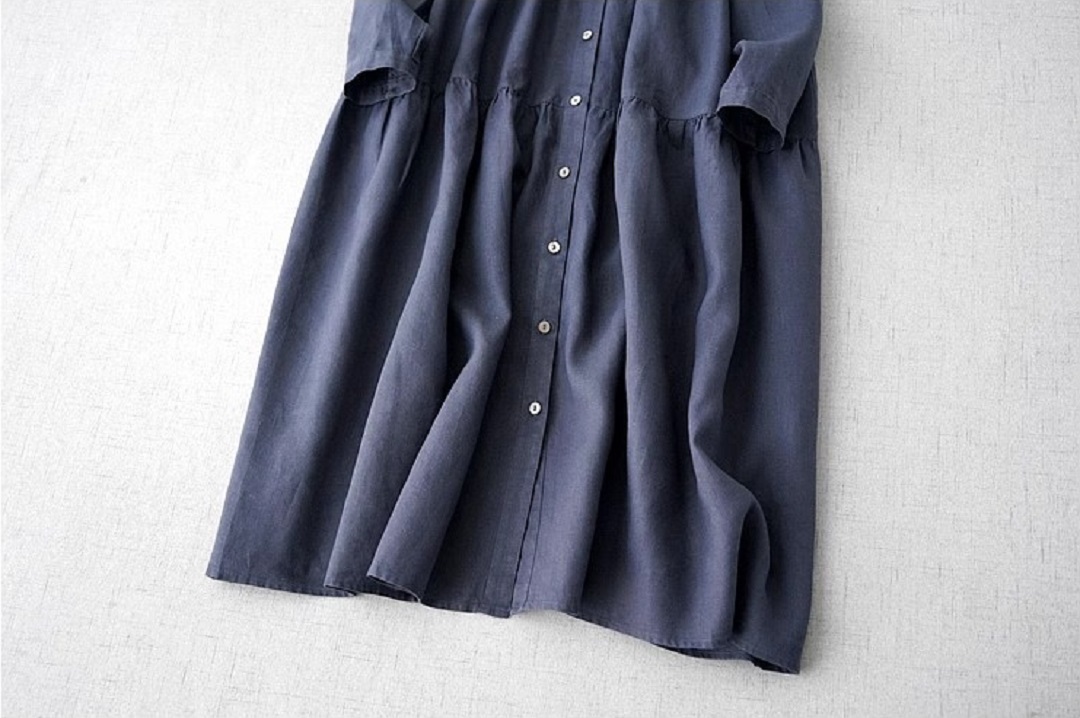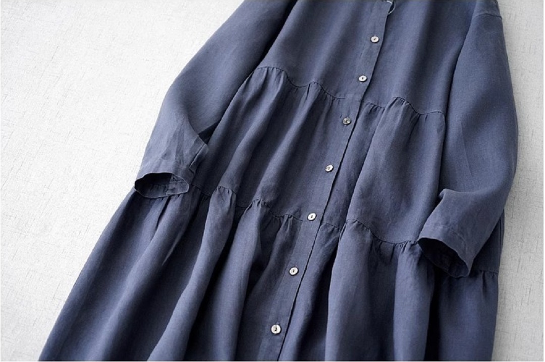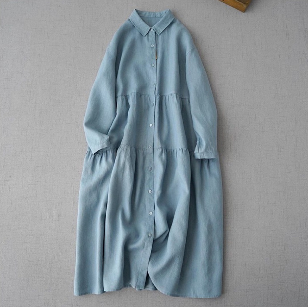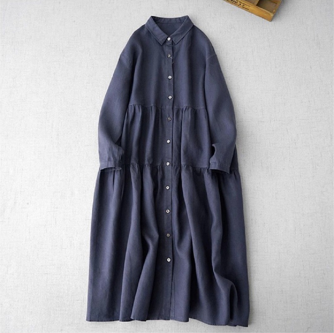 「同梱1万円送料無料」定番の紺色がとってもおしゃれなシャツワンピ★新品★大きいサイズ★ティアードがおしゃれなコットン風 紺