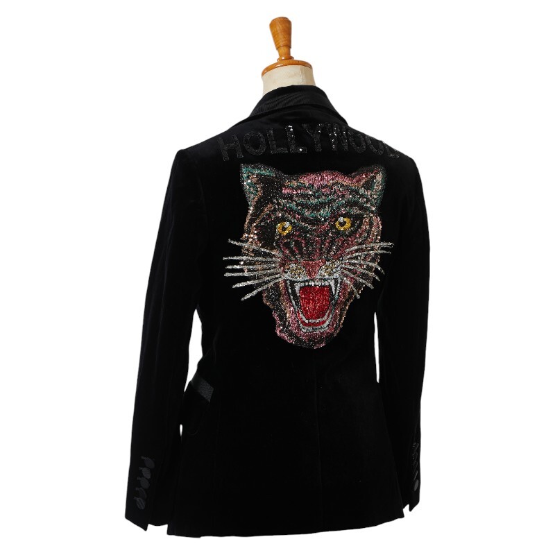 グッチ パンサー スパンコール テーラードジャケット サイズ:36 ブラック コットン ポリウレタン ベロア レディース GUCCI 【中古】