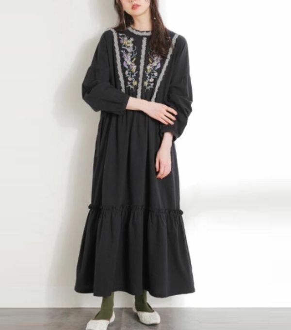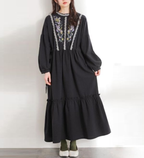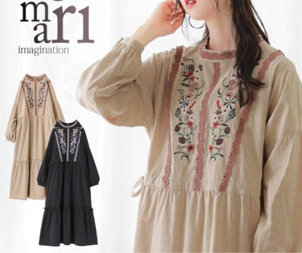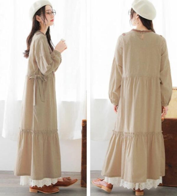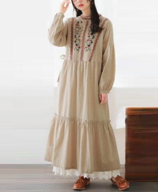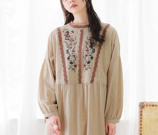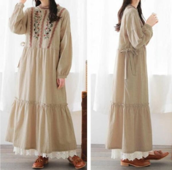 F サイズ採寸: 着丈120cm バスト114cm 素材 : 綿麻 |