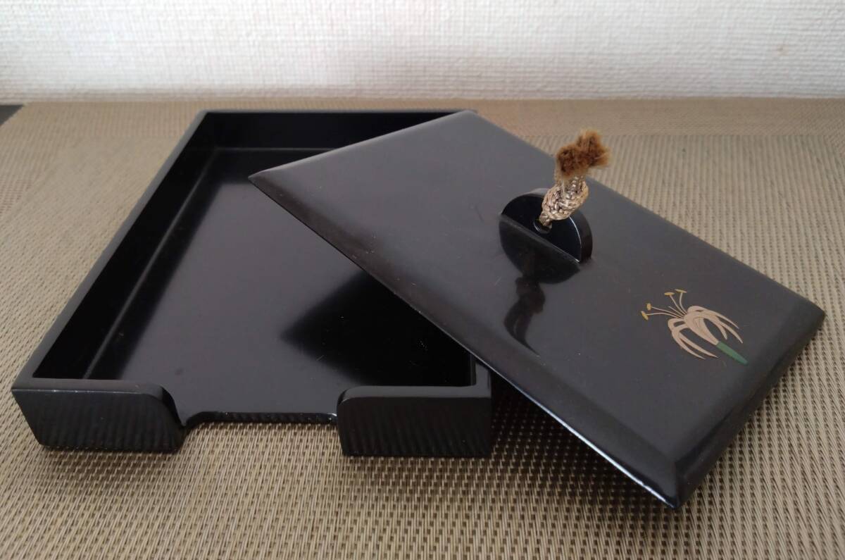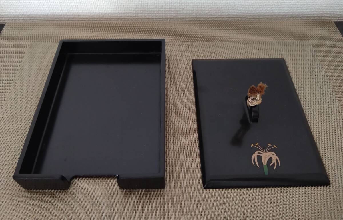 宮崎漆器 書入れ 小物入れ 漆塗り 蒔絵 花文 ##
