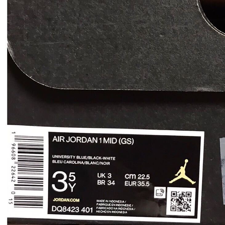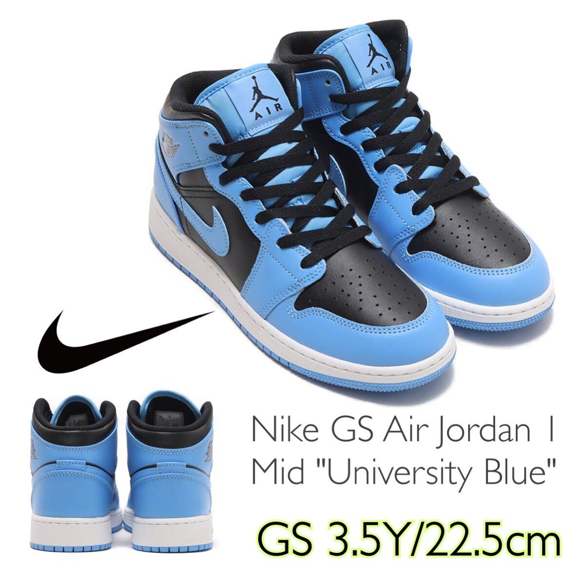 ナイキ GS エアジョーダン1 ミッド "ユニバーシティブルー"(DQ8423-401)青22.5cm箱無し