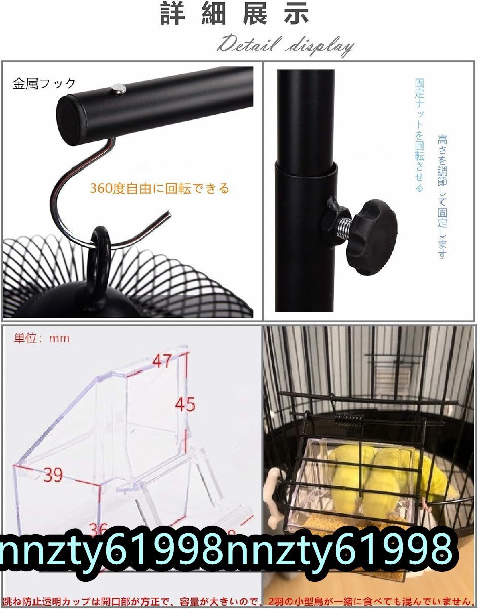 3.【伸縮設計を調整】スタンドはあなたの要求によって高度に伸縮調整できます。スタンドは最低で153cmまで下がることができて、最高で170cmまで上がることができて、直径49cmぐらいの鳥かごを掛けることに適します。荷重は3 kgぐらいで、鳥が遊んでいる時には傾斜や転倒などが発生しません。