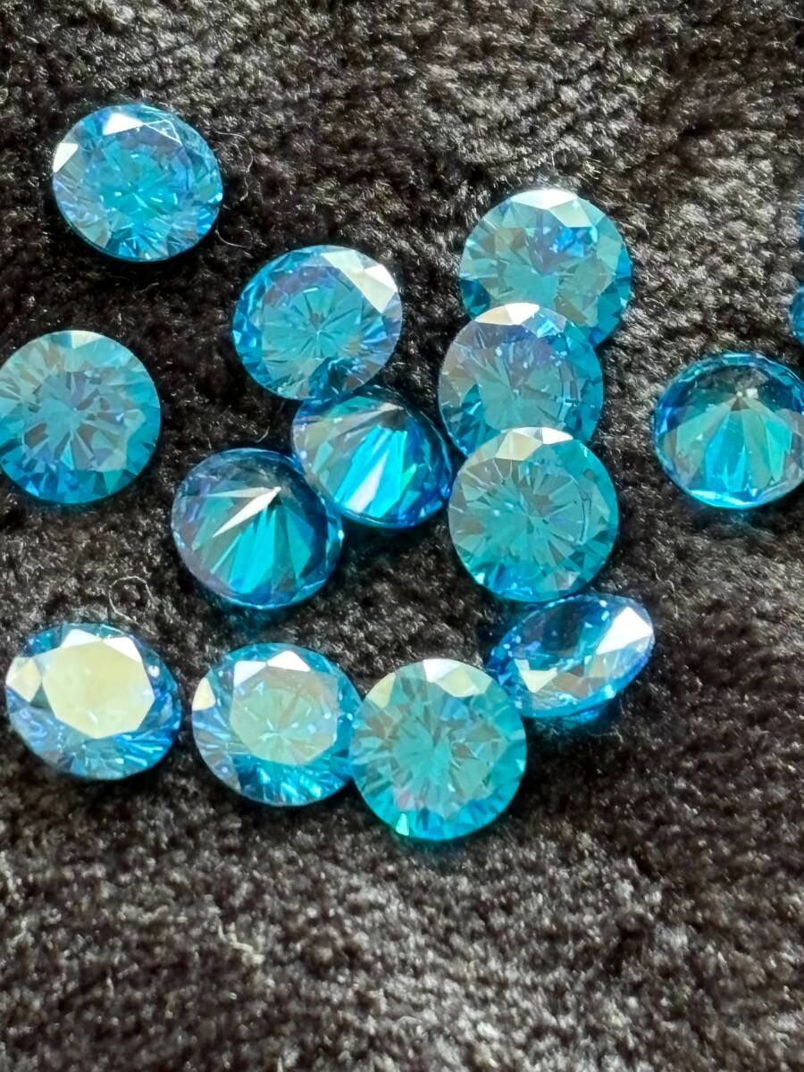 ライトブルーカラー6mmルース 6個 キュービックジルコニア(人工・合成ダイヤ)アクセサリー材料、DIYハンドメイドパーツ