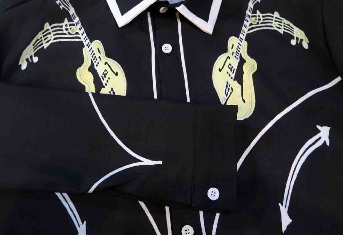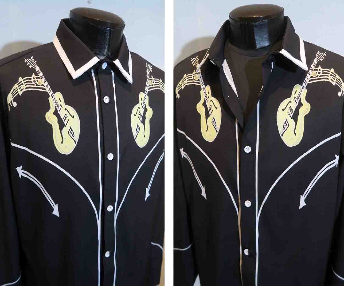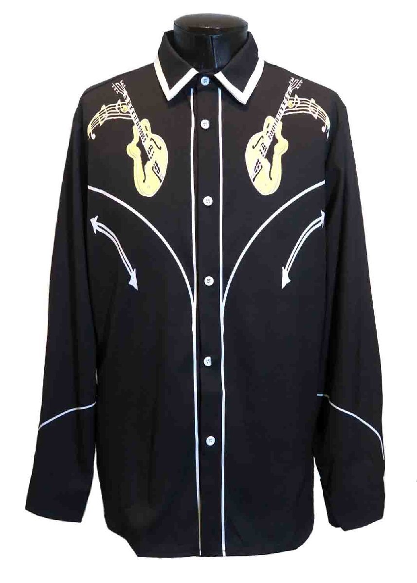 新品 Lサイズ ウエスタンシャツ 黒 ギター 2123 メンズ 柄シャツ 綺麗め カウボーイ ロカビリー ロック モード ヴィジュアル系 テンガロン