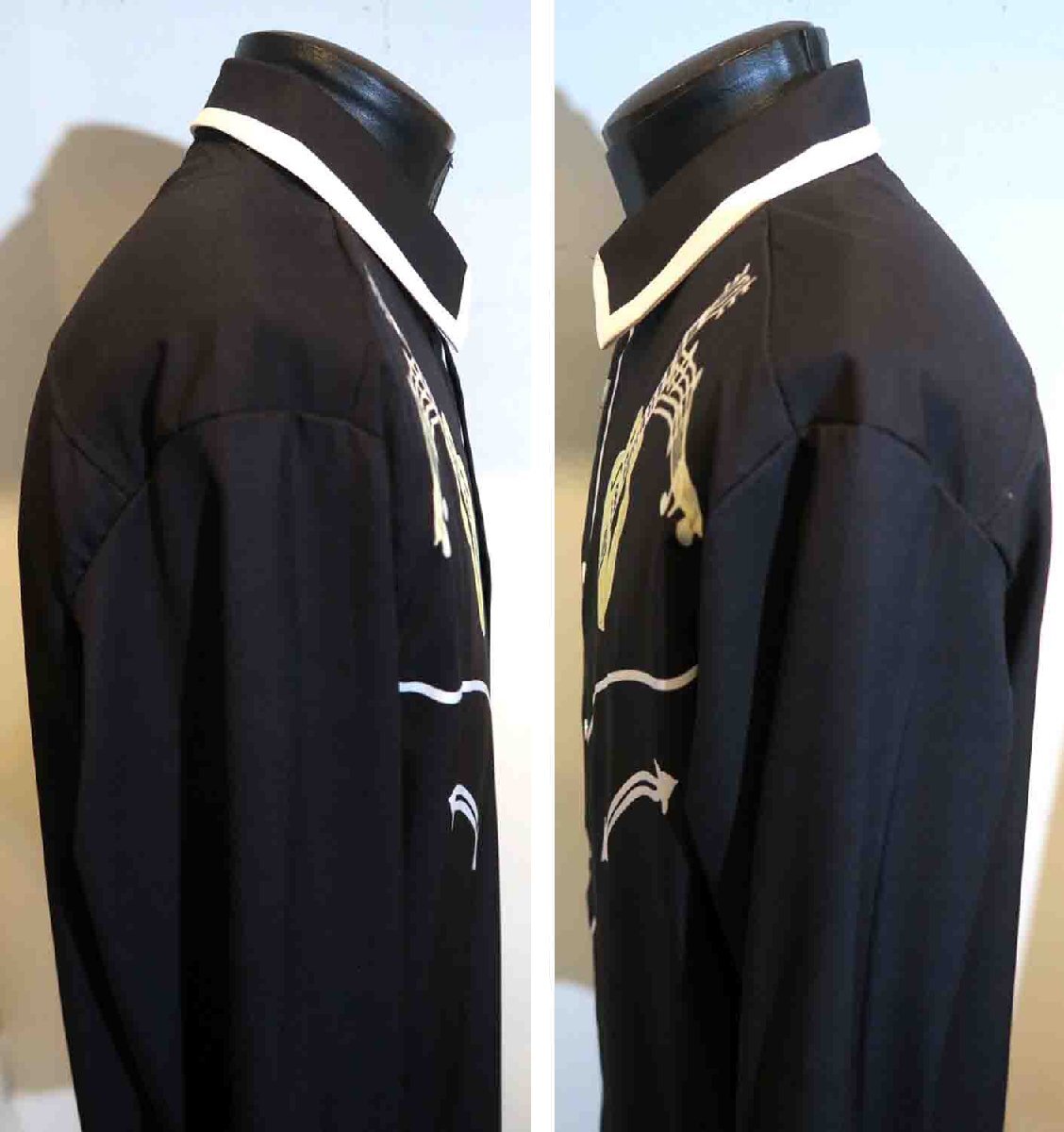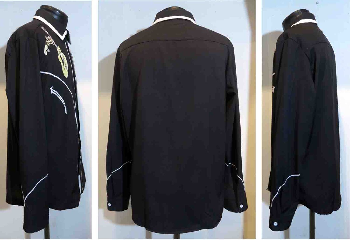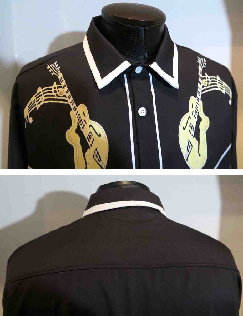 新品 Lサイズ ウエスタンシャツ 黒 ギター 2123 メンズ 柄シャツ 綺麗め カウボーイ ロカビリー ロック モード ヴィジュアル系 テンガロン