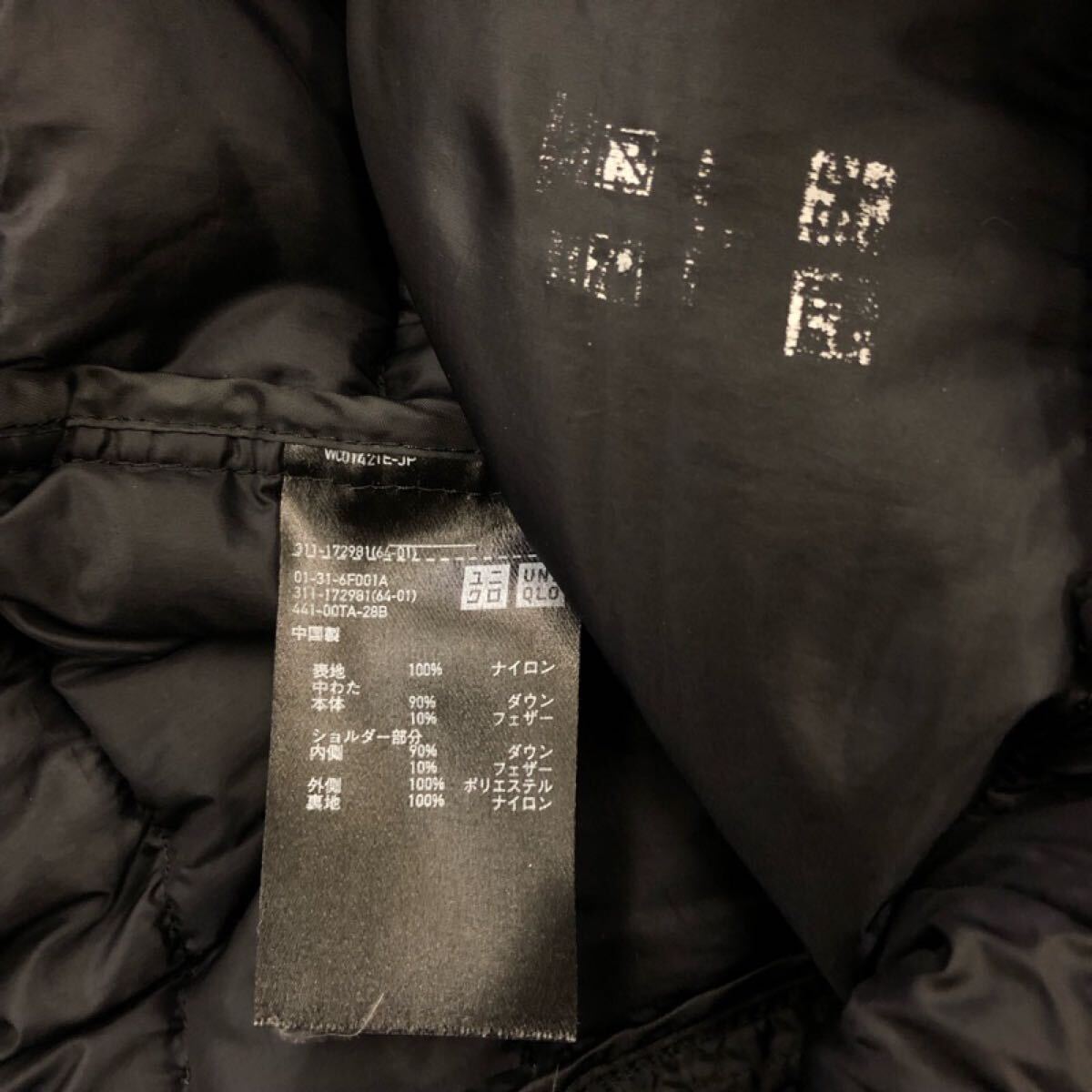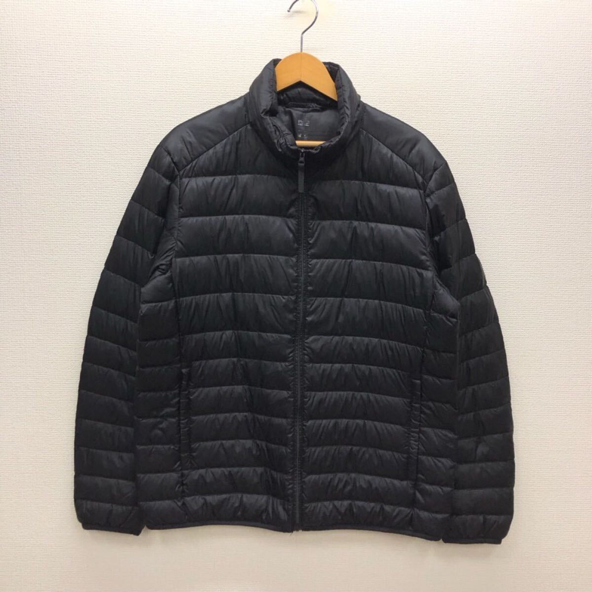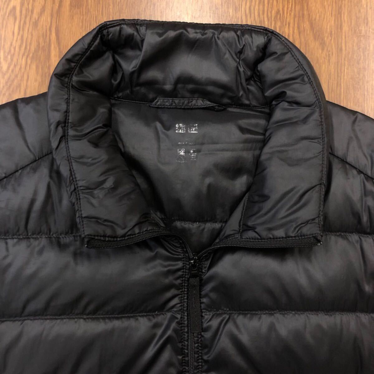 【ぬ018】UNIQLO ライトダウンジャケット ブラック 長袖 スタンドカラー 耐久撥水加工 ポケットジップ メンズブランド古着 送料無料