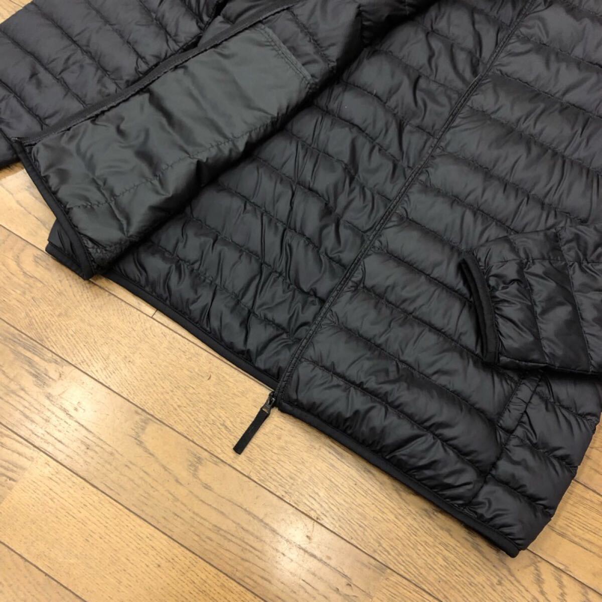 【その他】メンズ、ジャケット、ジャンパー、インナーダウン、コンパクトダウン、長袖、軽量ダウン、スタンドカラー、袖口ゴム、裾ゴム、耐久撥水加工、ポケットジップ、保存用の袋はありません。